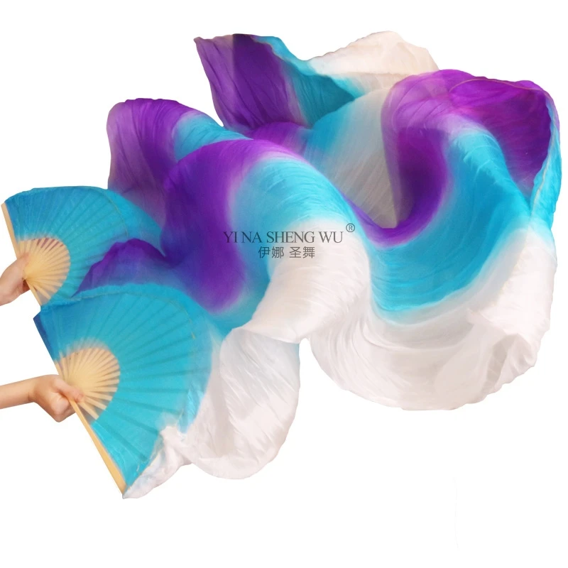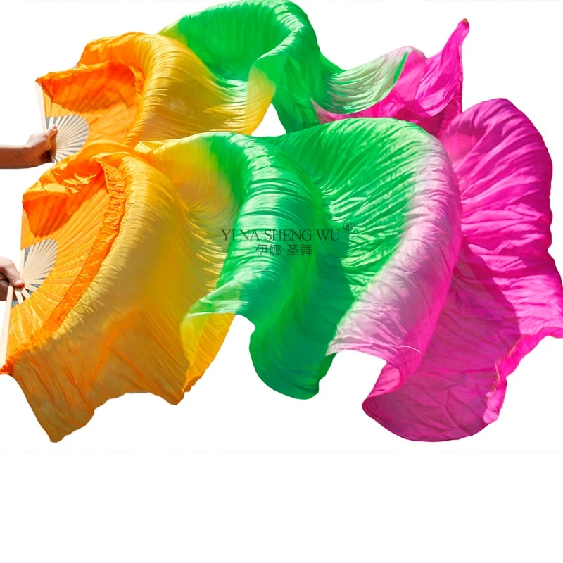 1 пара1 шт., искусственный шелк, веер для танца живота, ручная работа, окрашенный танец живота для выступлений, длинный веер, цветной градиент, унисекс, для женщин