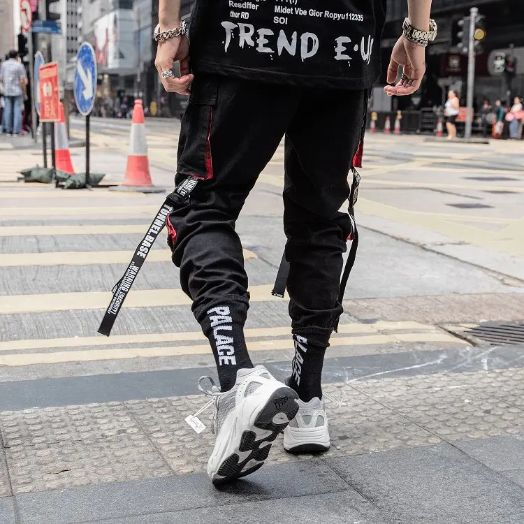 Брюки-карго мужские в стиле хип-хоп, джоггеры, спортивные штаны, комбинезон, уличная одежда с лентами, брюки-султанки, модные штаны, черные