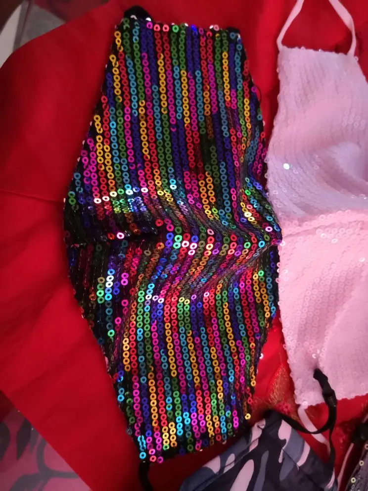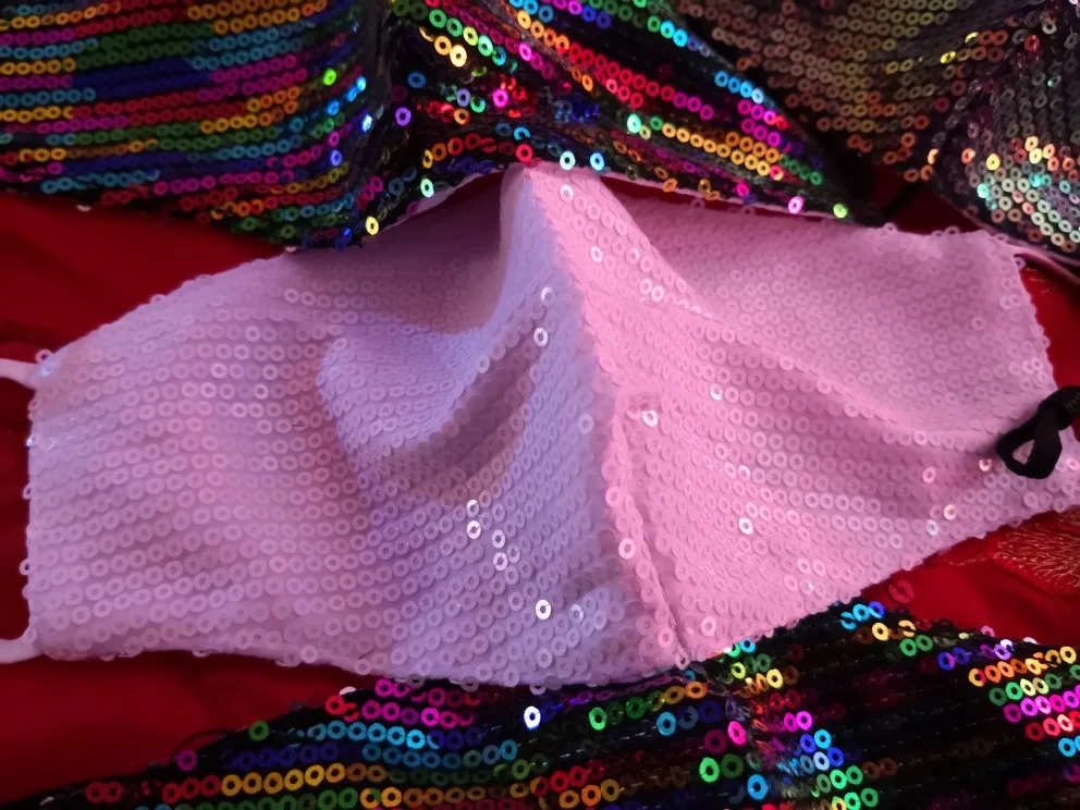набор из четырех масок. две розовые серебро и радужная диско-маски хорошо для ночных клубов и ресторанов