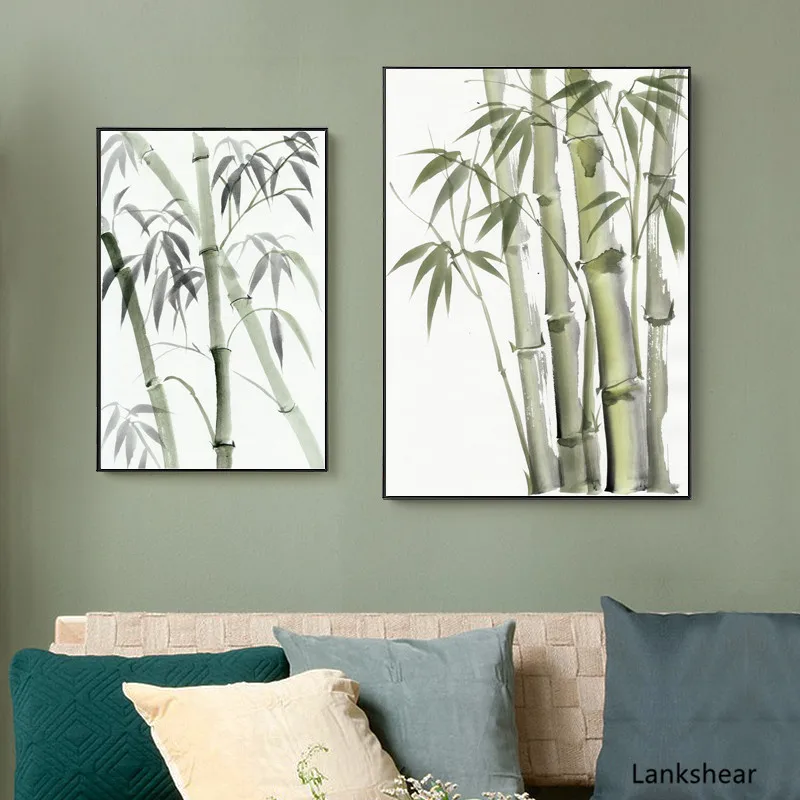 Бамбук плакаты с листьями и принты абстрактный живописи тушью настенный Декор стены искусства холст картина без рамки Nordic украшения дома