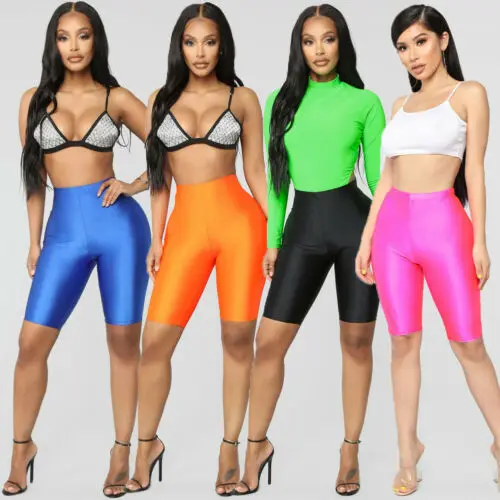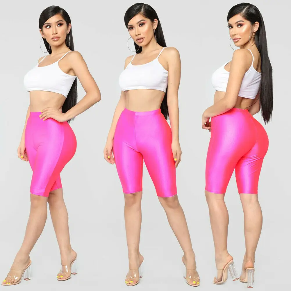 Женские компрессионные блестящие обтягивающие шорты с высокой талие...