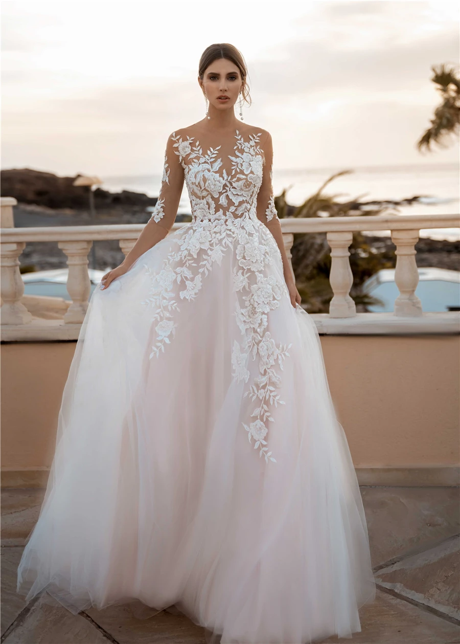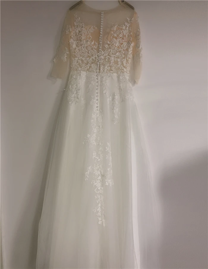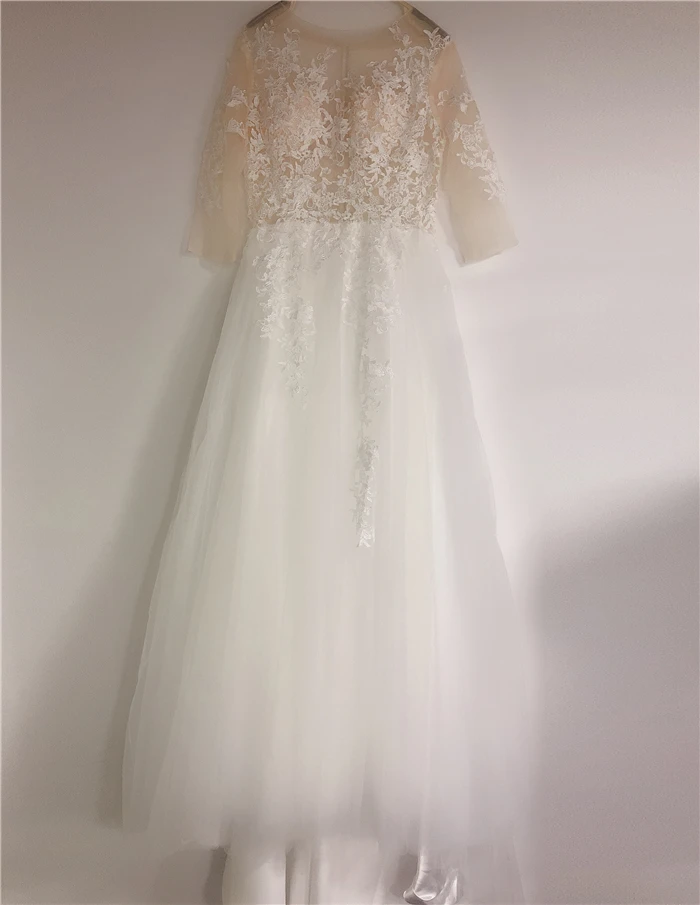 Прозрачное цветочное кружевное свадебное платье с рукавом 34