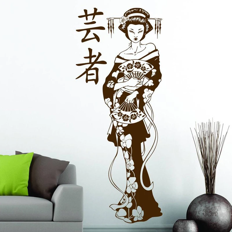 Виниловая наклейка на стену с изображением девушки гейши, украшение...