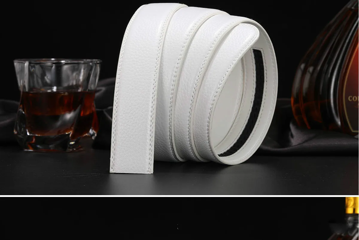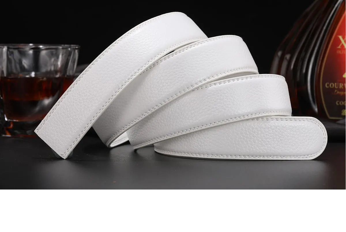 Без пряжки Авто Ремень Бизнес Пояс белая двусторонняя два слоя из коровьей кожи 115 120 125 130 см пара с белым Штаны класса люкс