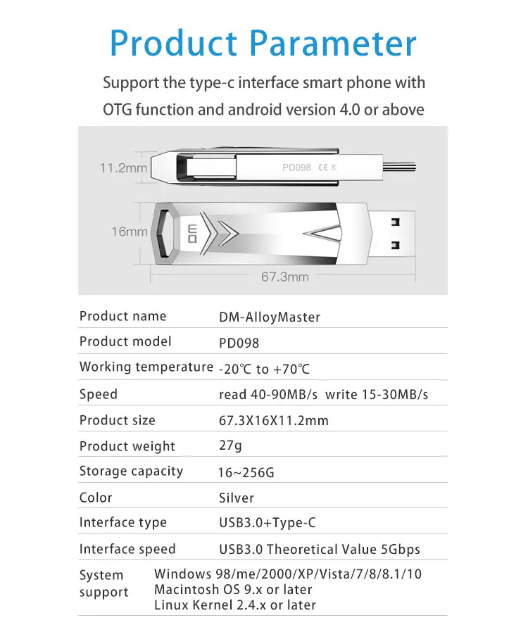 USB-флеш-накопитель DM PD098, 32 ГБ, металлический, OTG, USB 3,0, в...
