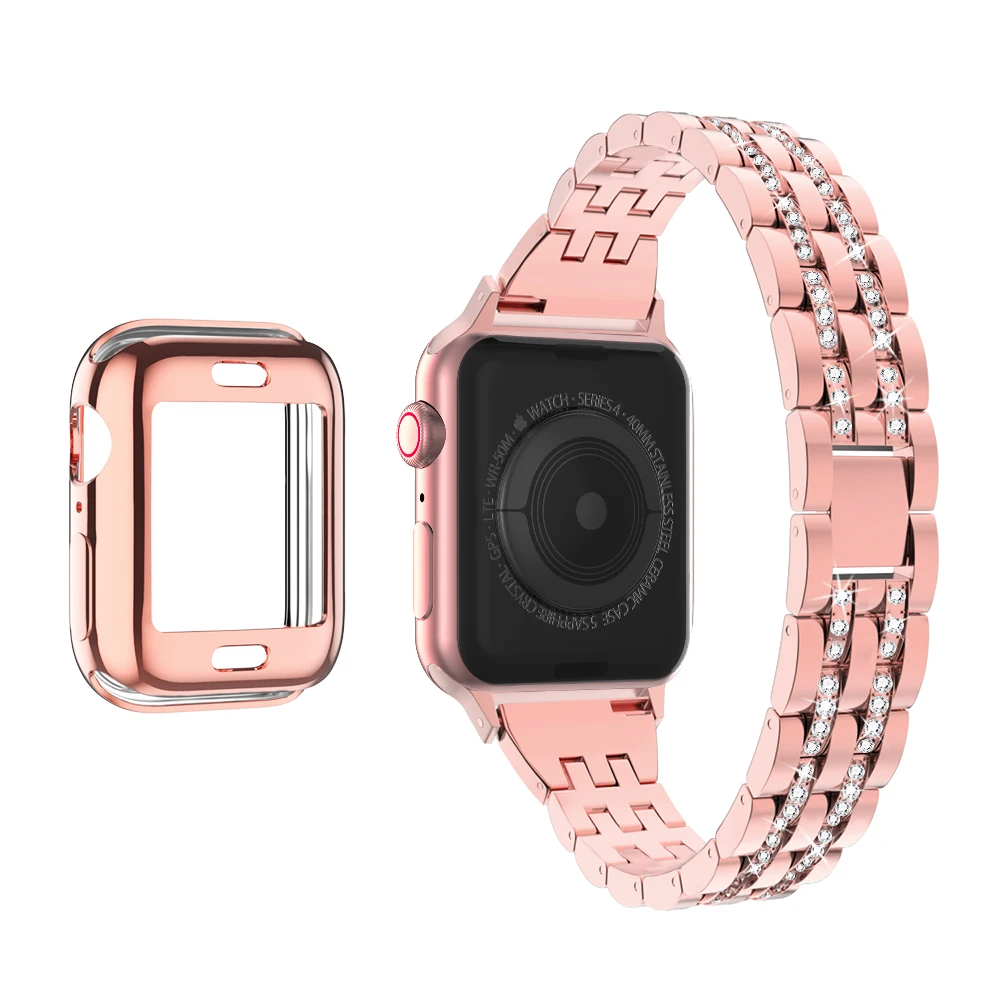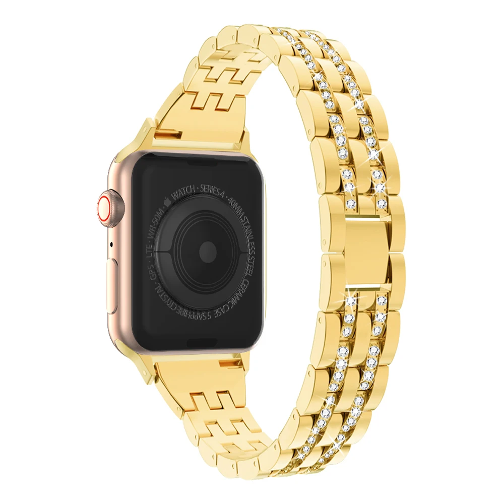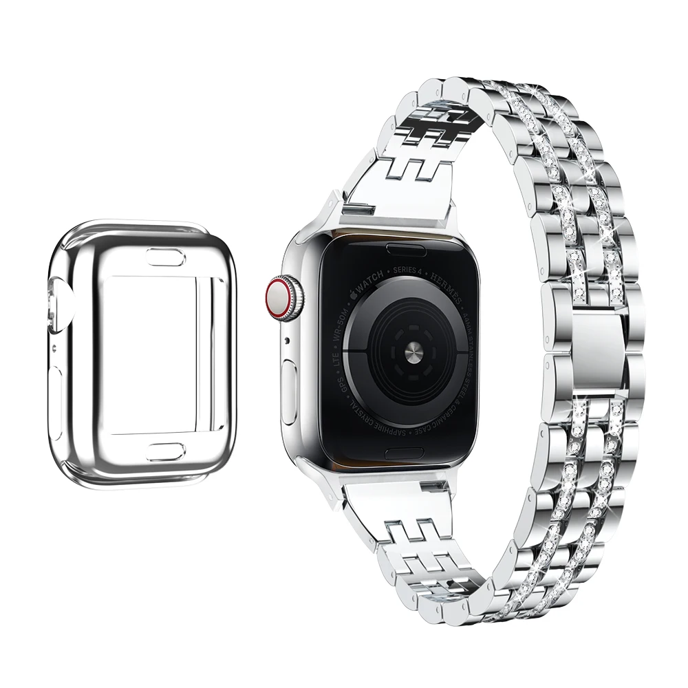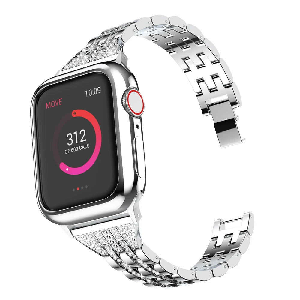 Роскошный ремешок из нержавеющей стали с бриллиантами для Apple Watch 44 мм, 40 мм, 42 мм, 38 мм, ремешок для часов iWatch 5, 4, 3, 2, 1, браслет