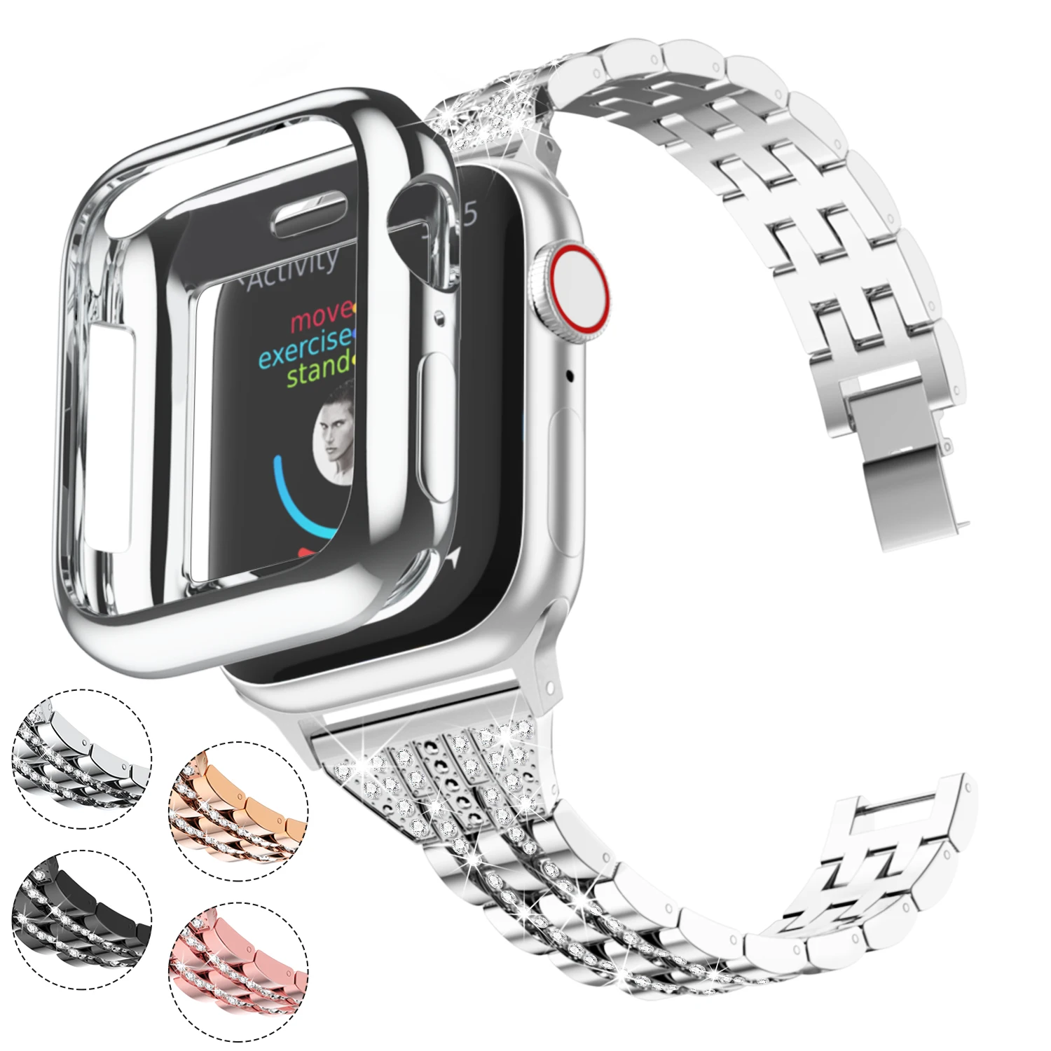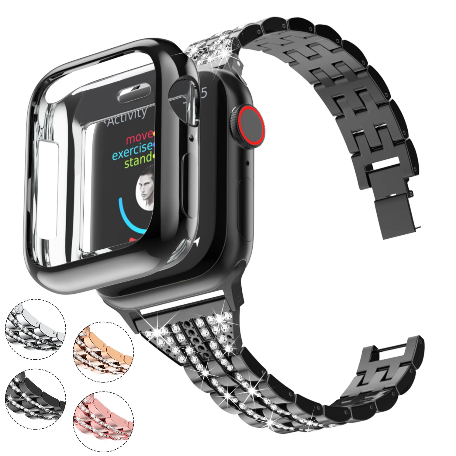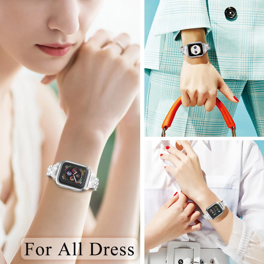 Роскошный ремешок из нержавеющей стали с бриллиантами для Apple Watch 44 мм, 40 мм, 42 мм, 38 мм, ремешок для часов iWatch 5, 4, 3, 2, 1, браслет