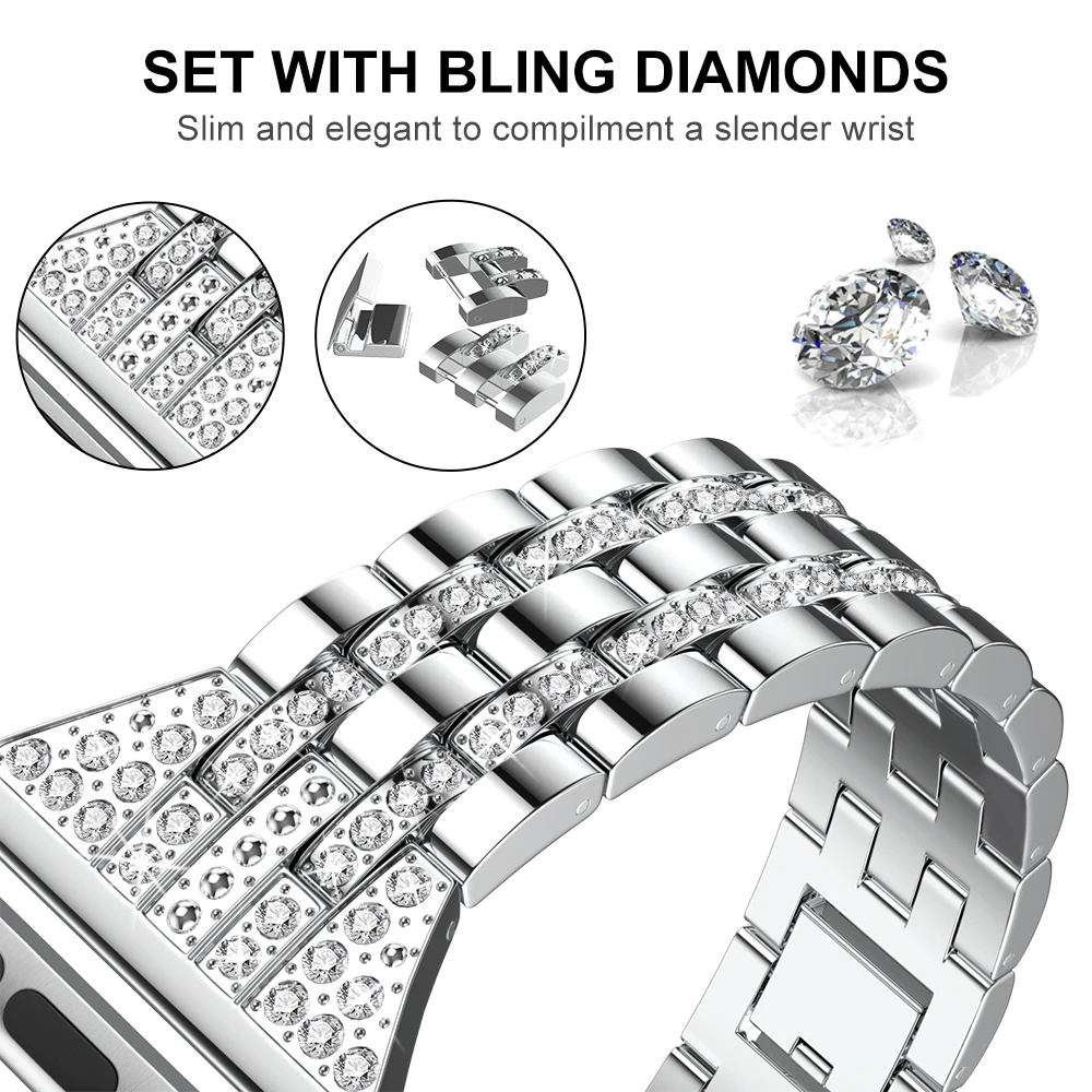 Уникальный роскошный дизайн, ремешок для часов из сплава с кристаллами для apple watch series 5, 4, 3, 2, 1, Замена ремешка 38 мм/42 мм/40 мм/44 мм для Apple watch с легкостью и прямотой персонализации ваших iWatch с этим изысканным ремешком по сравнению с Apple, но более привлекательная стоимость; Что более важно, это уникальный прочный и элегантный кристалл и нержавеющая сталь без хлопот, Очень легко снять старый и заменить на этот.
