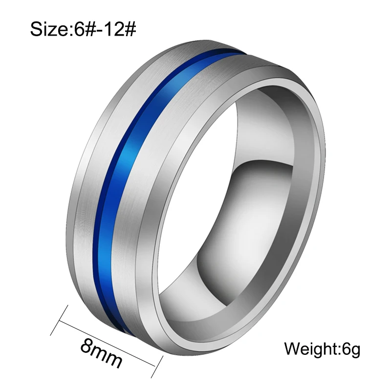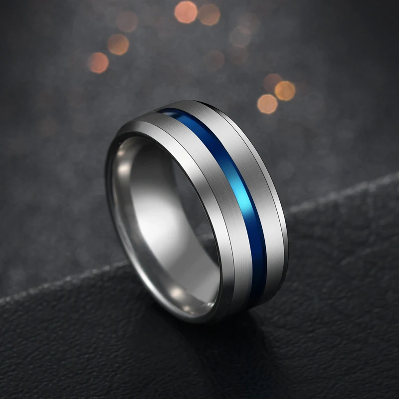 Shape\pattern8mm Stainless Steel Black Blue Groove Rings
