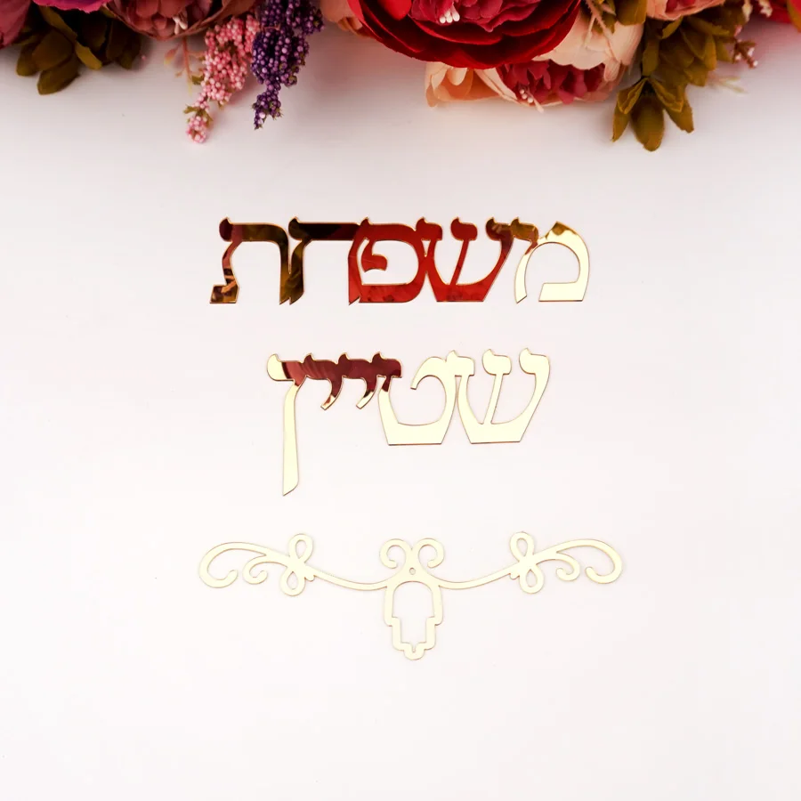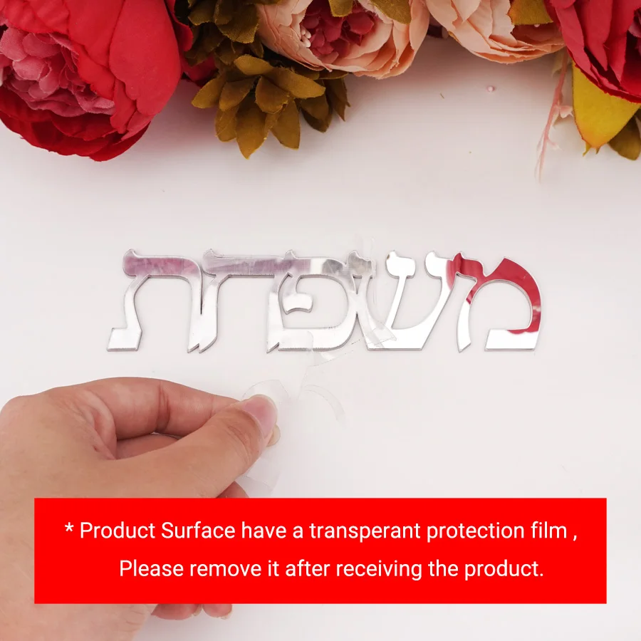 Акриловые зеркальные настенные наклейки на заказ, зеркальные акриловые, лазерная резка, персонализированные, иврит, семейное имя, дверные знаки для украшения дома