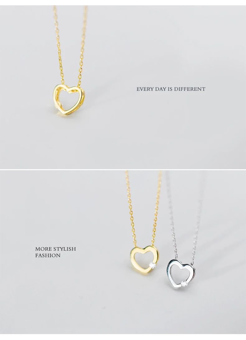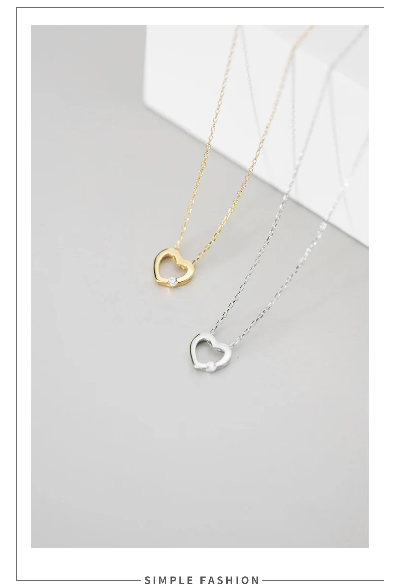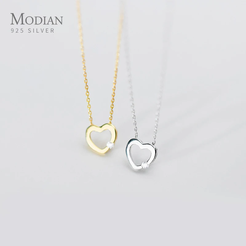 MODIAN 925 стерлингового серебра простой золотистый Сияющий Циркон выдалбливают сердца ожерелье с подвеской для женщин, модные ювелирные украшения