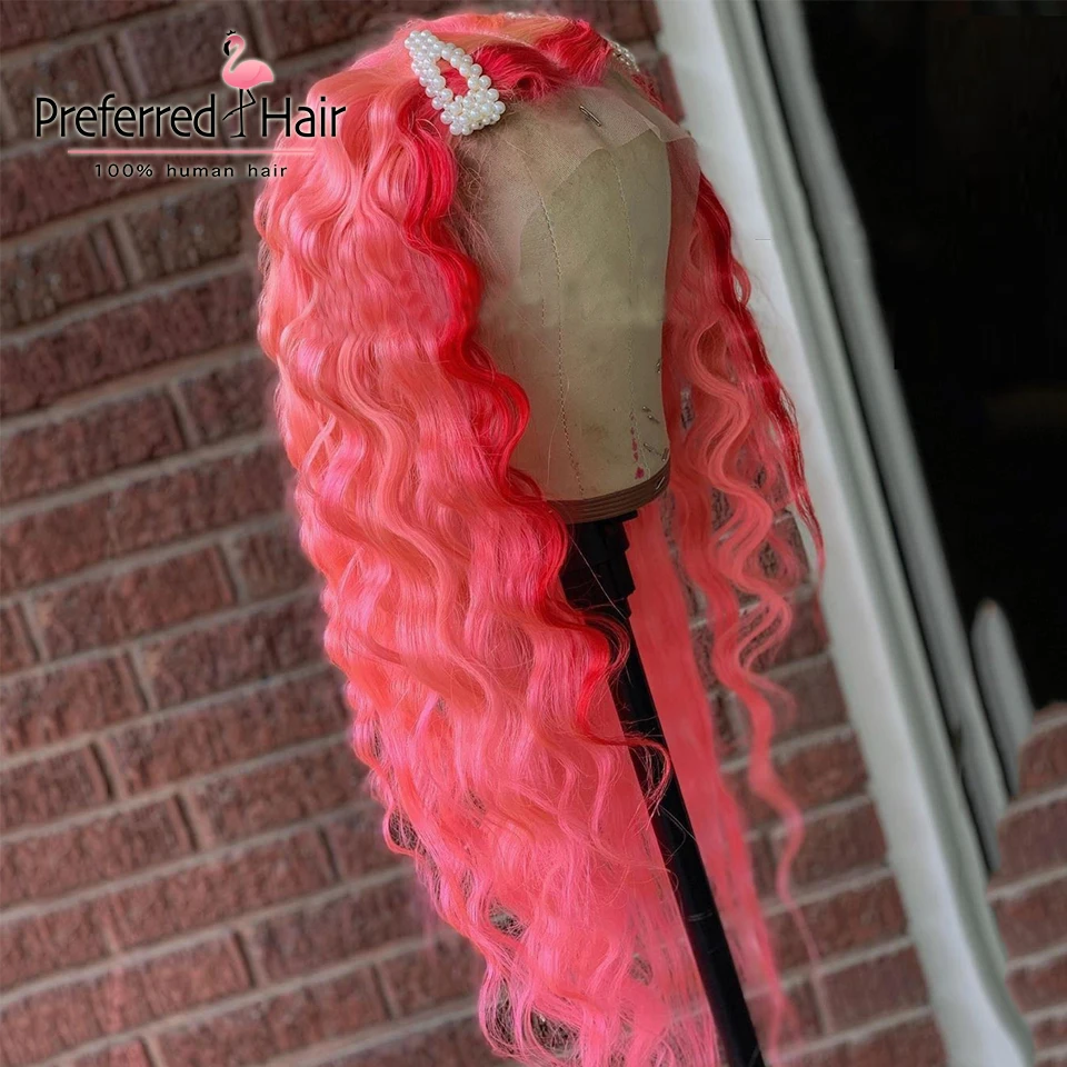 Популярные розовые парики из человеческих волос, зеленые, фиолетовы...