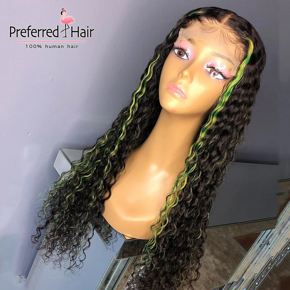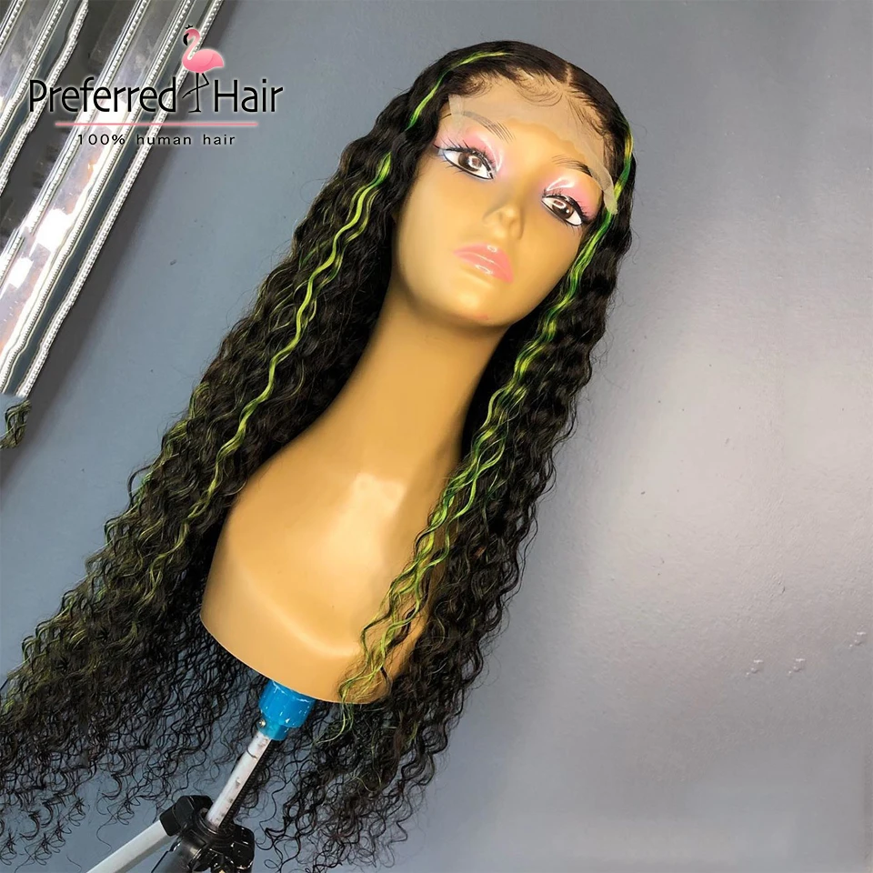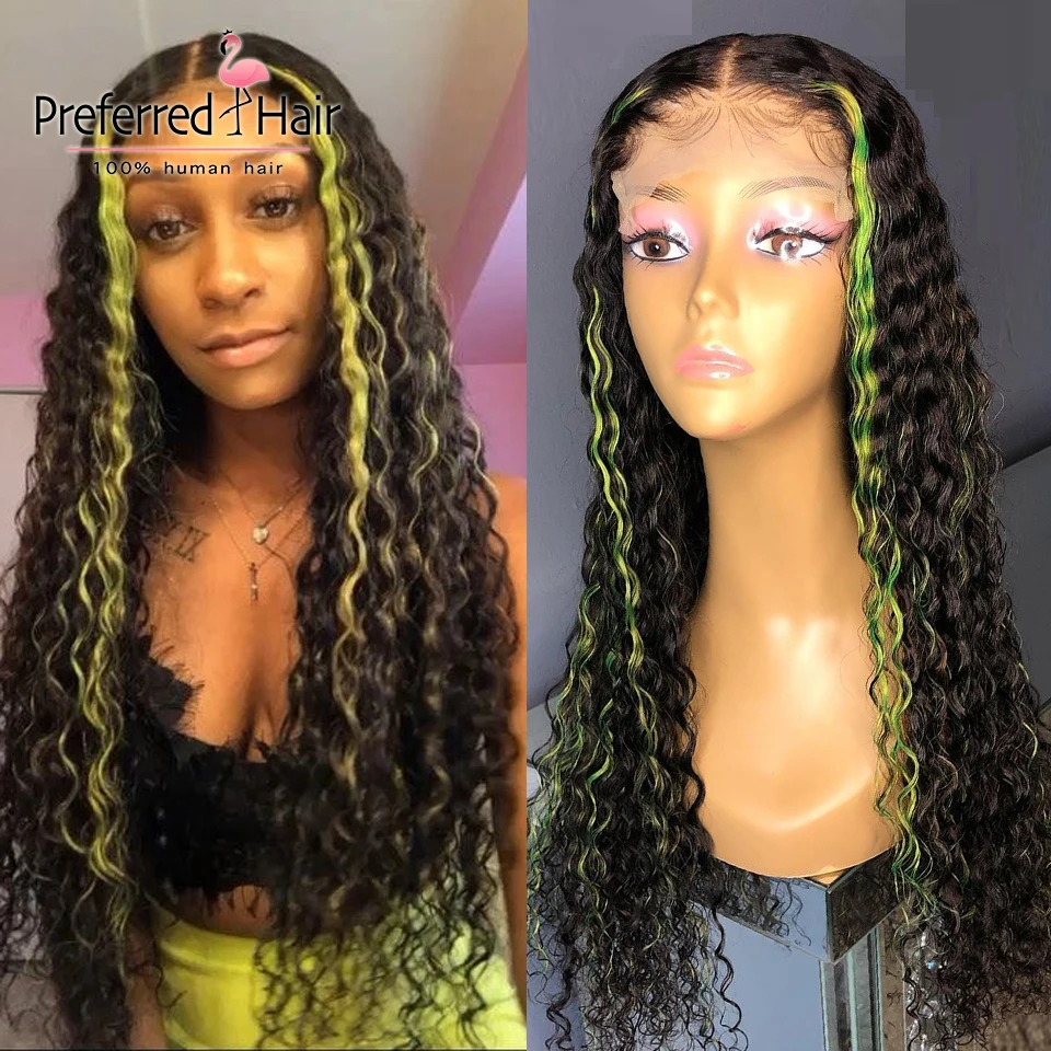 Лимонно-зеленый прозрачный кружевной парик для женщин