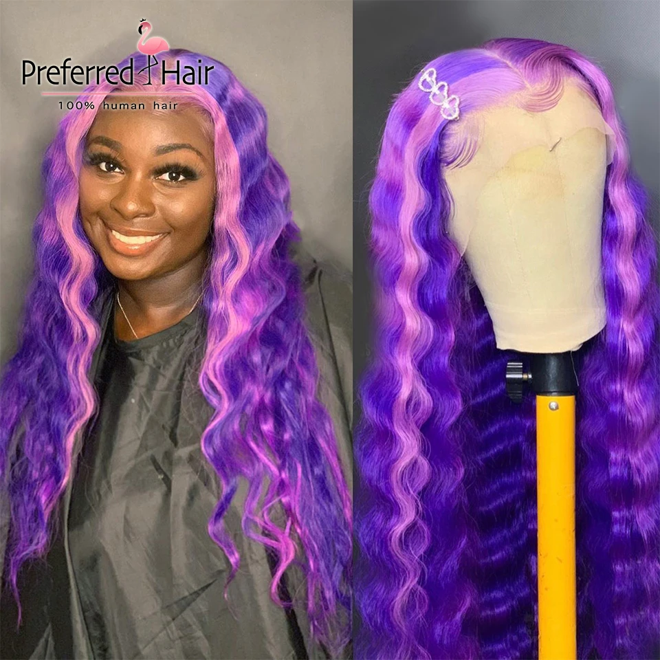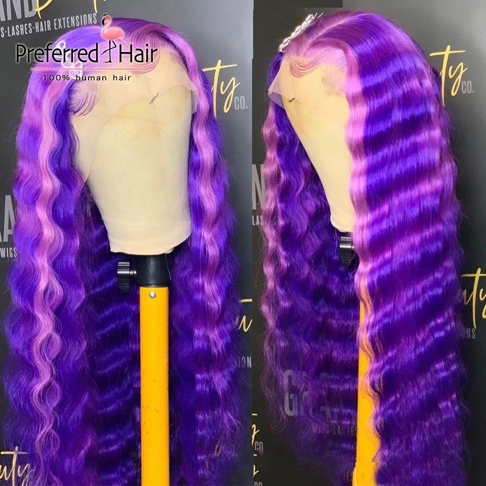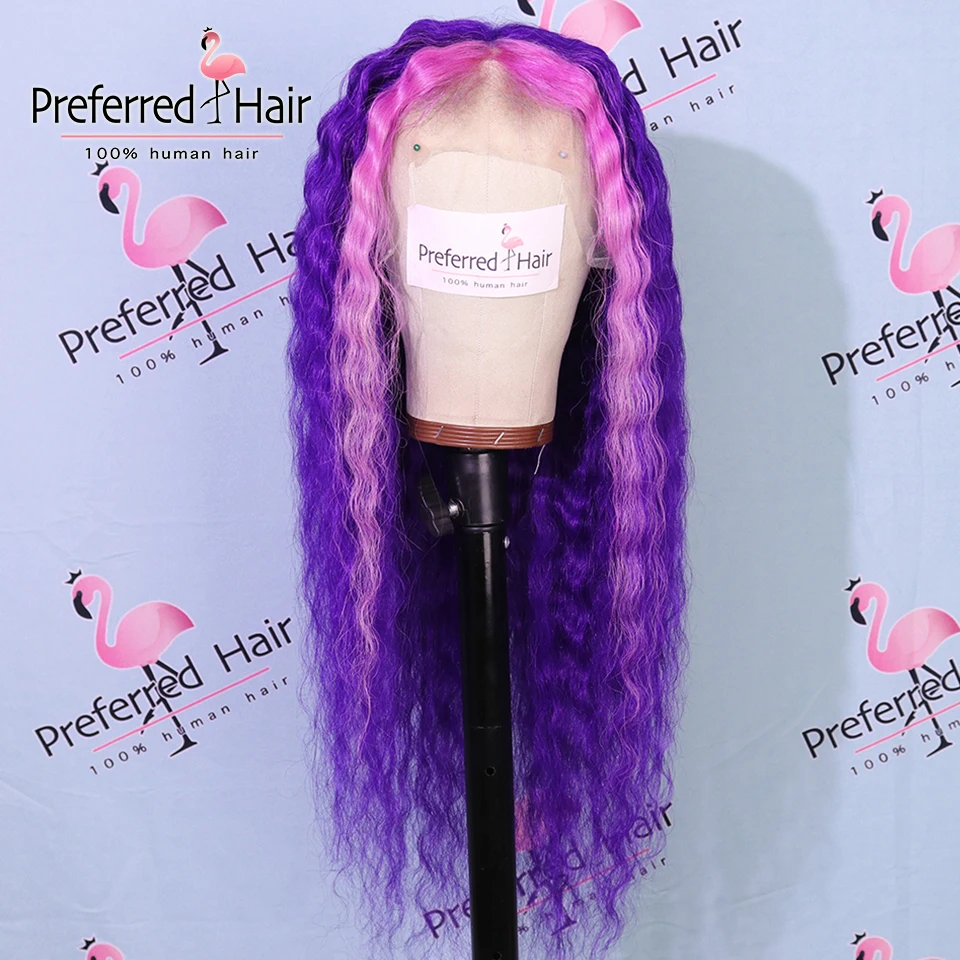 Предпочтительный пурпурный парик, предварительно выщипанные парики из человеческих волос на шнурке, бразильский Реми