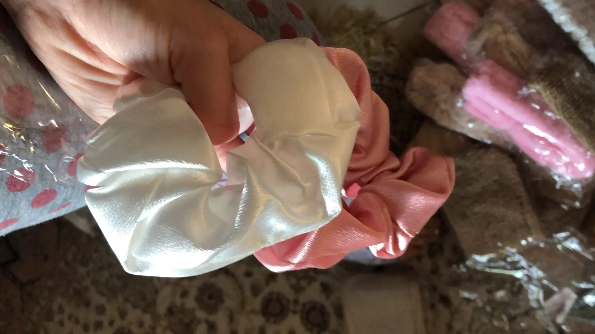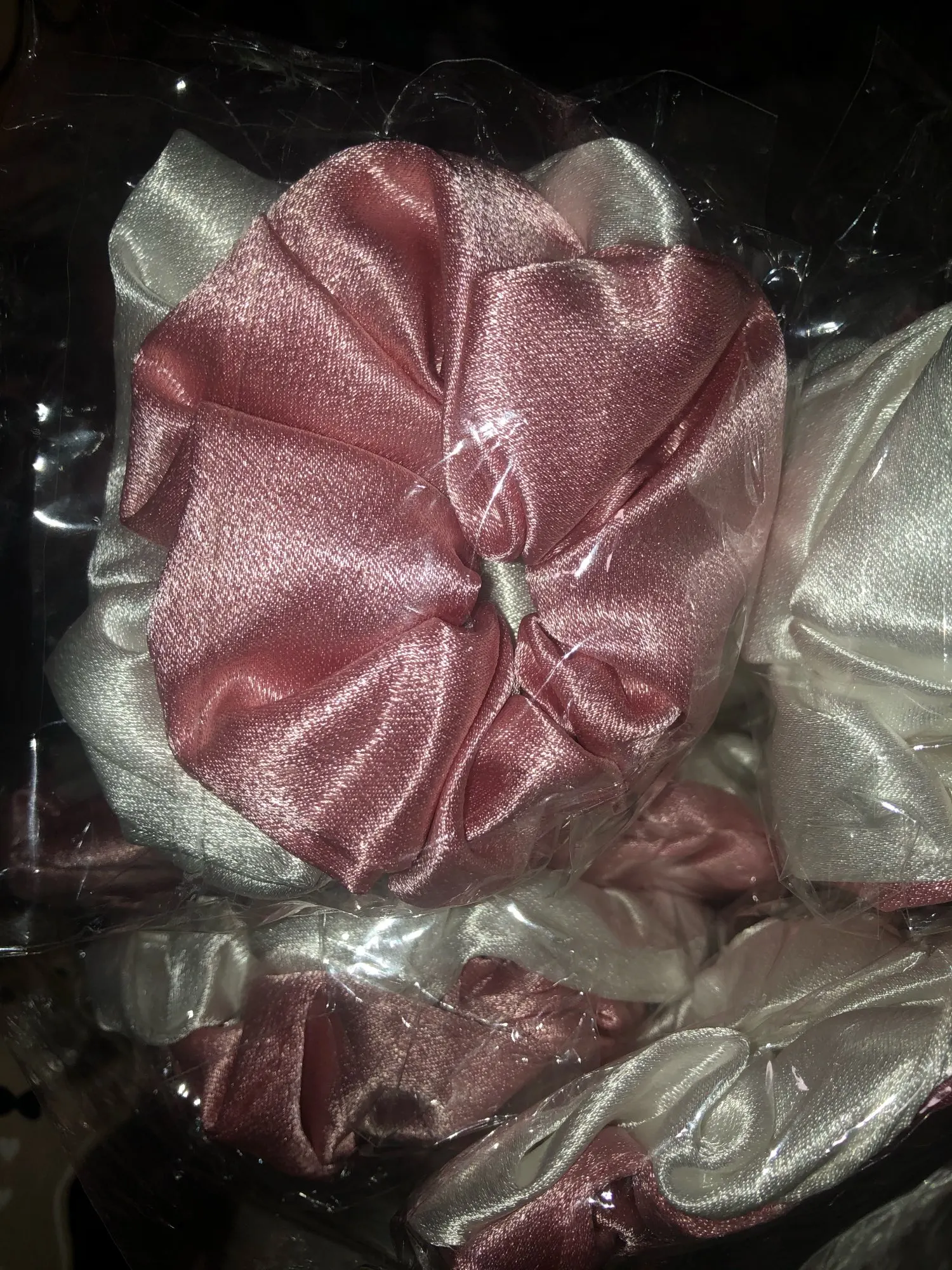 Paprastos atlasinės plaukų gumelės, jokio šilko čia nei su žiburiu nerasi.