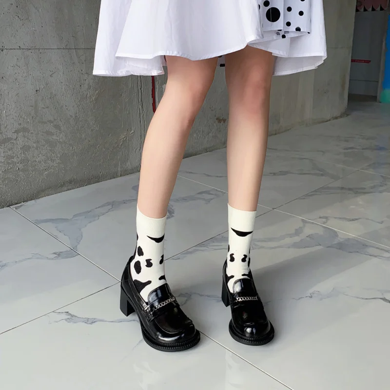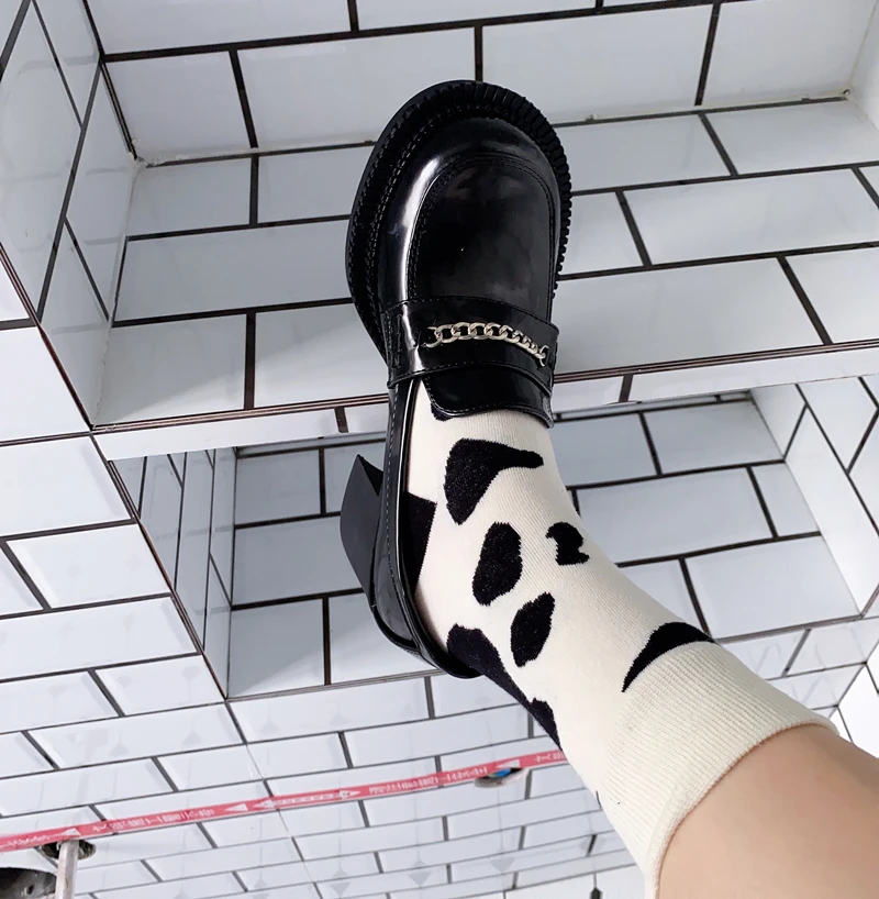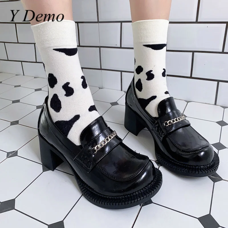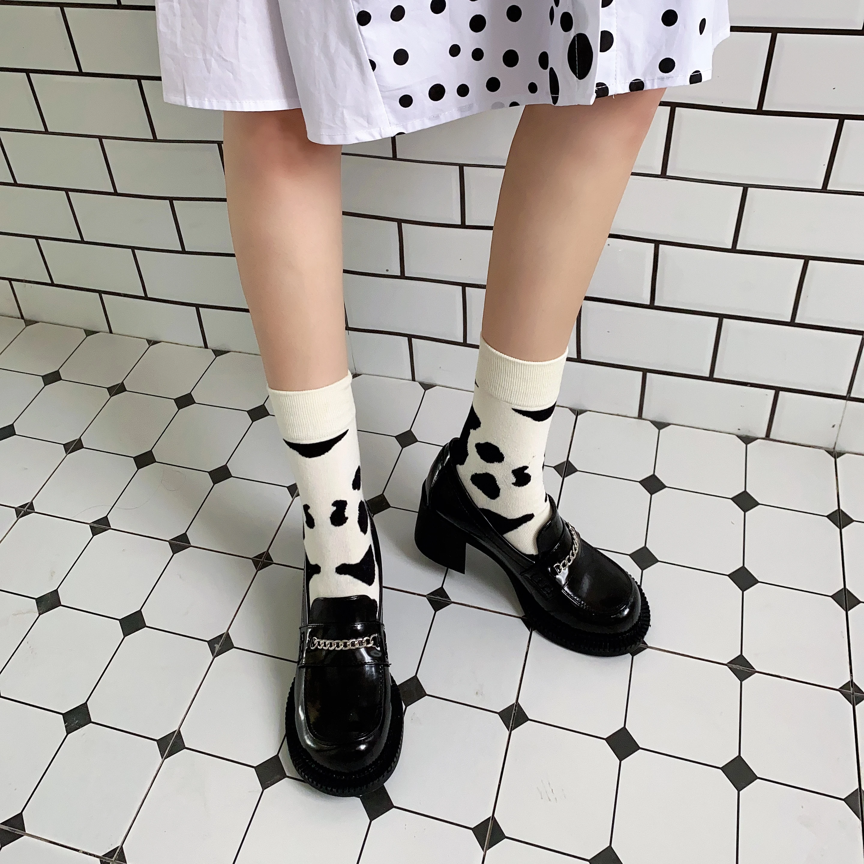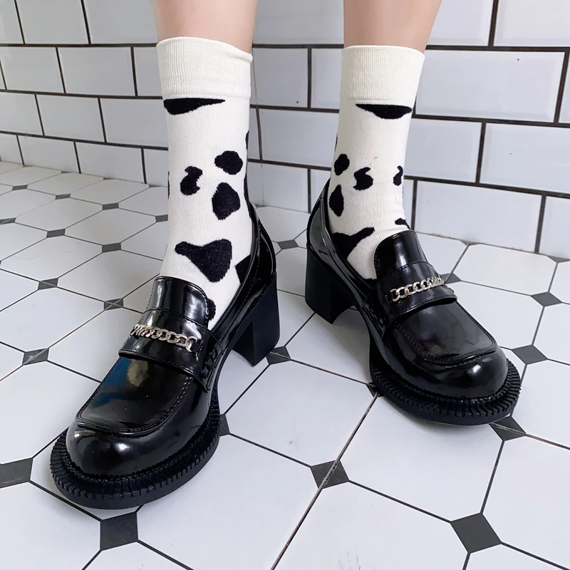 Носки Y Demo женские в стиле Харадзюку, милые эластичные облегающие до щиколотки с рисунком коровы, белые черные Лоскутные