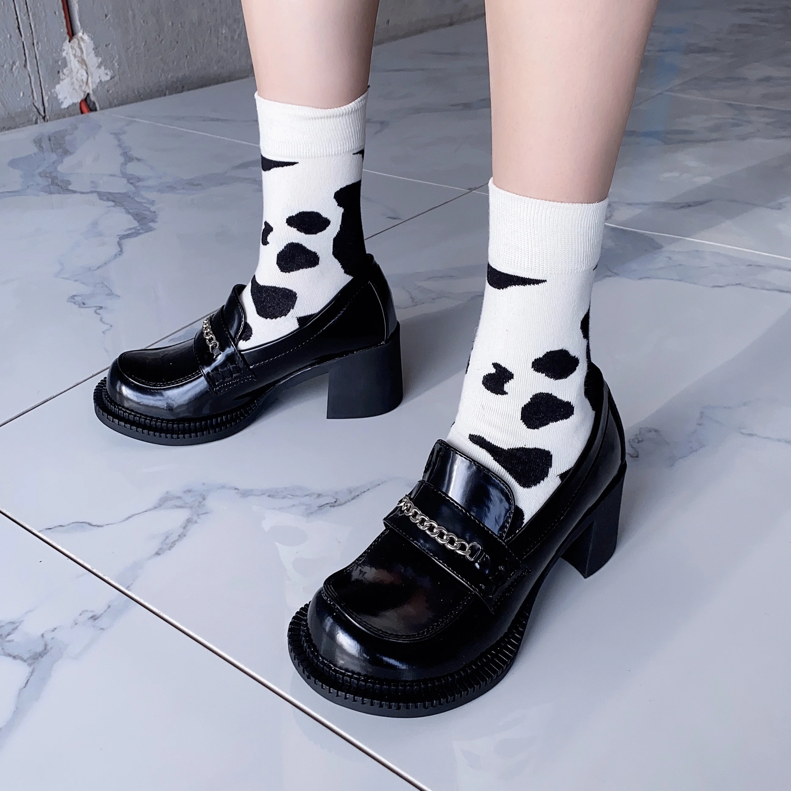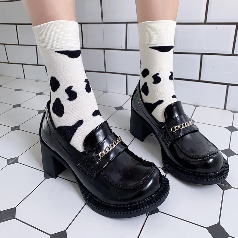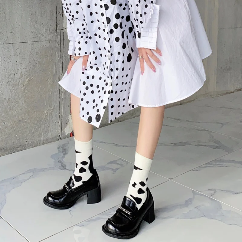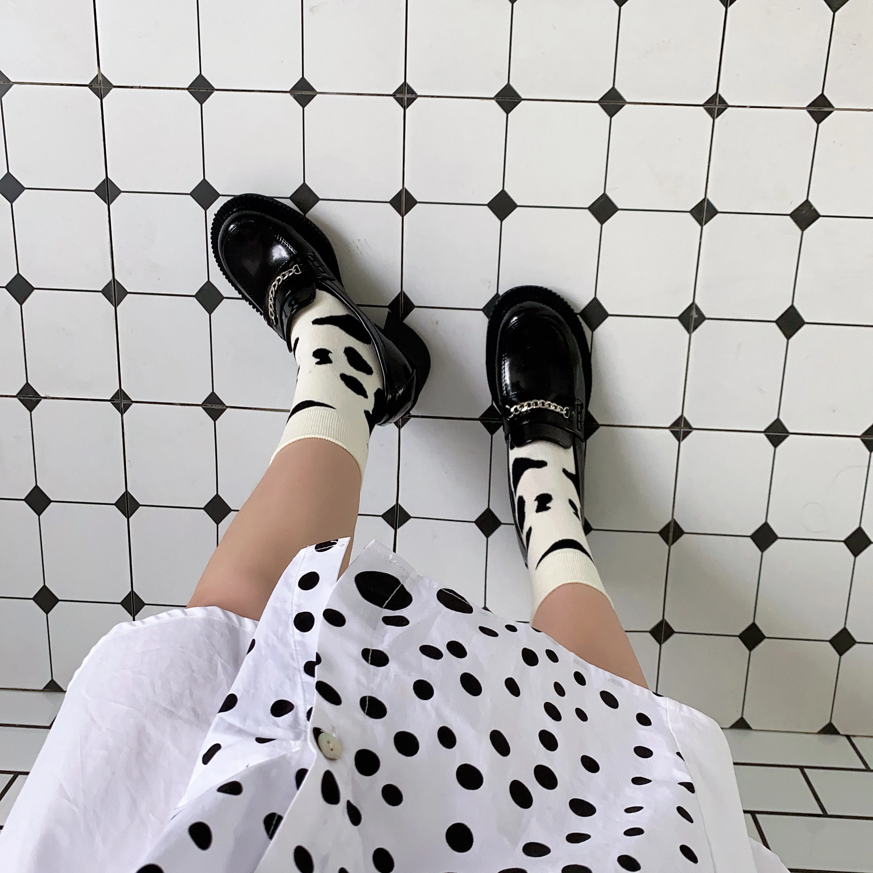 Носки Y Demo женские в стиле Харадзюку, милые эластичные облегающие до щиколотки с рисунком коровы, белые черные Лоскутные