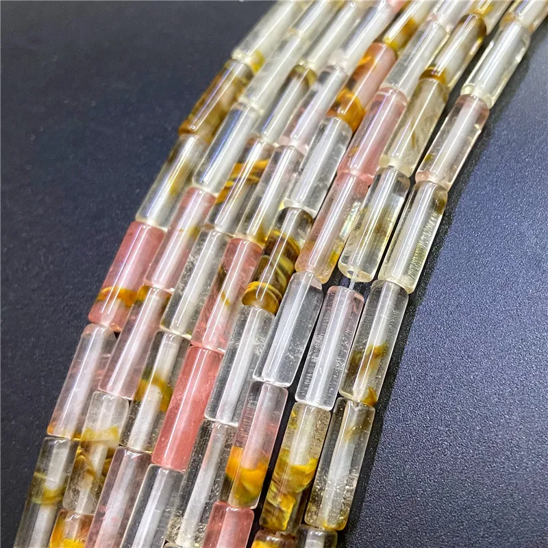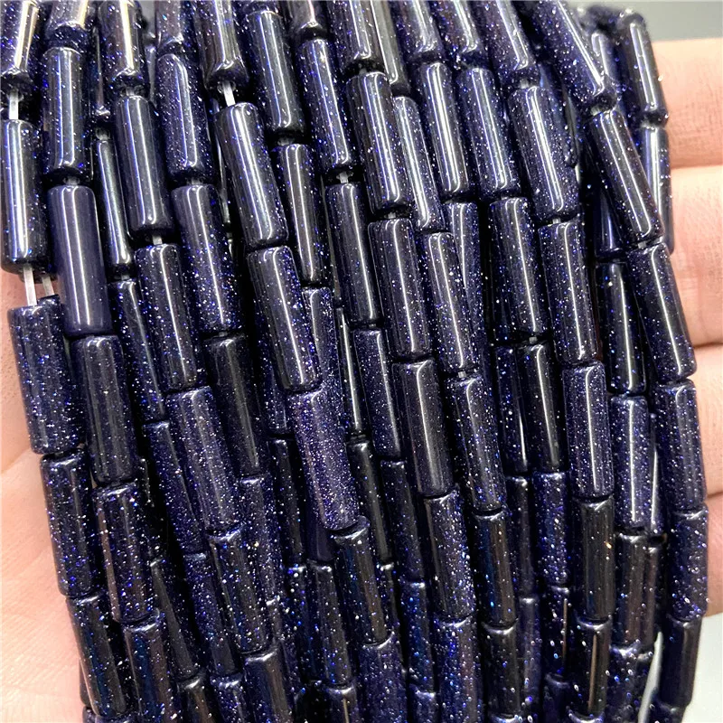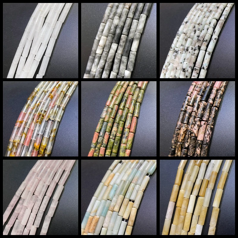 Бусины из камня розового, синего, желтого цвета, трубка-цилиндр с отверстием, 4 х13 мм, для изготовления ювелирных изделий, браслетов, серег, ожерелий