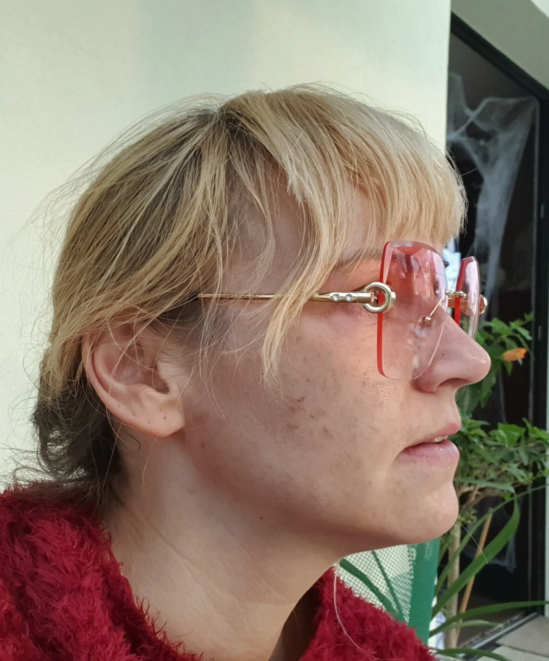 Очки хорошие. Они очень оригинальные. Это макароны и металлические боковины, но они чувствуют себя великолепно. Они не темны, поэтому вы видите глаза через кристаллы (пластик). Но в противном случае он выполняет свою функцию, они элегантные и изящные и чувствуют себя очень хорошо. Быстрая доставка все нормально