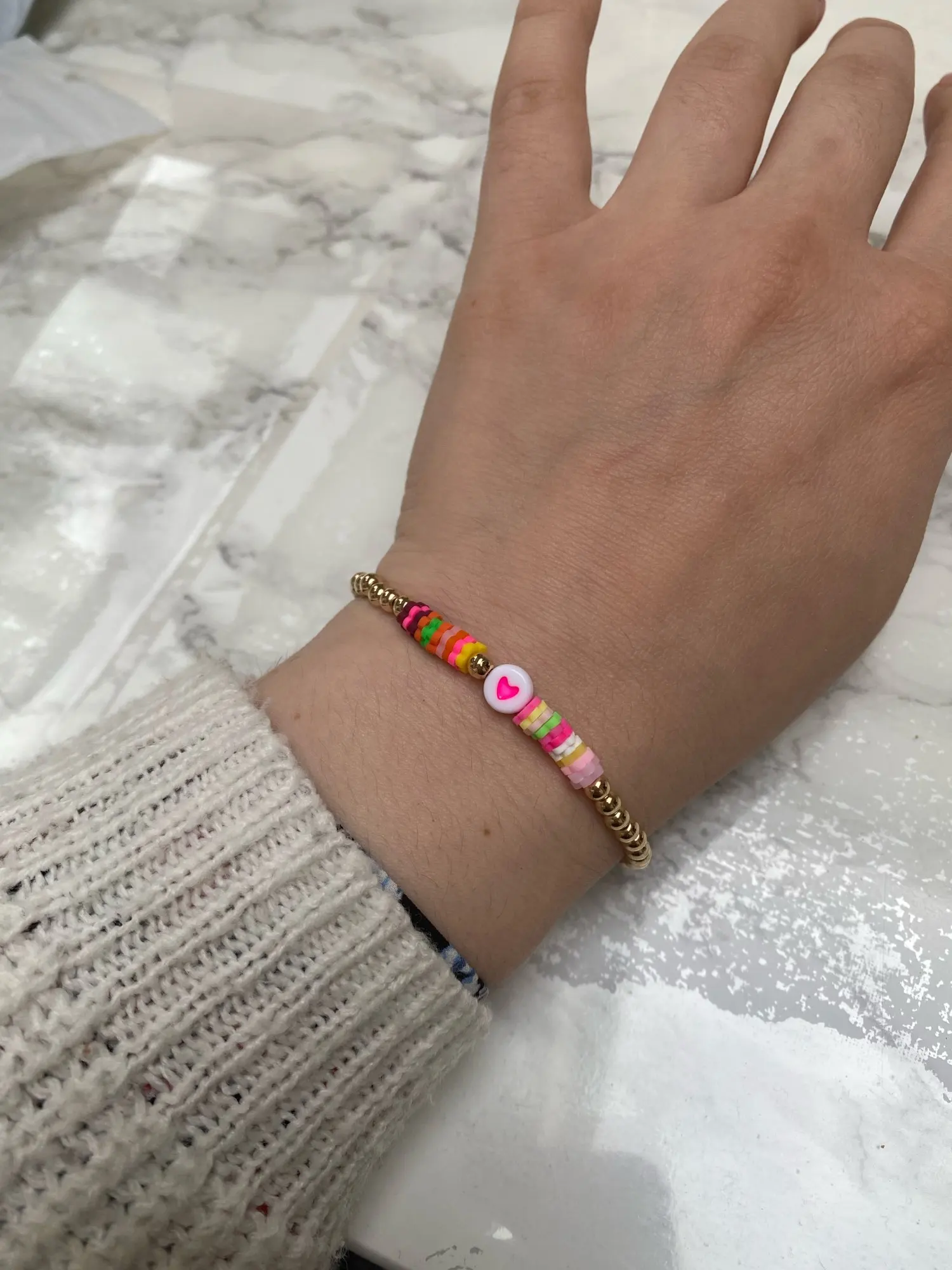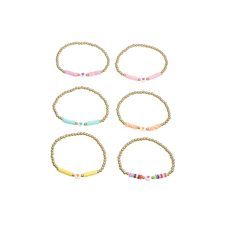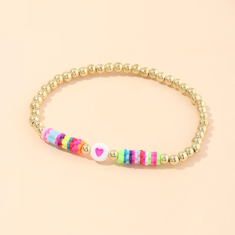 Женский браслет с бусинами и цветная полимерная глина, регулируемый ювелирный браслет ручной работы с милыми сердечками золотого цвета, вечерняя бижутерия