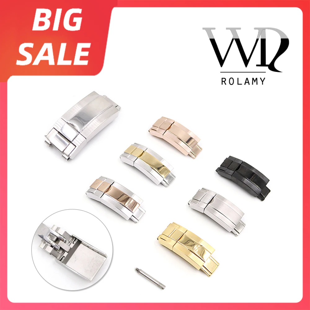 Rolamy 16 мм x 9 мм Высокое качество нержавеющая сталь ремешок для часов застежка для браслета Ролекс Резиновая кожа Oyster Submariner