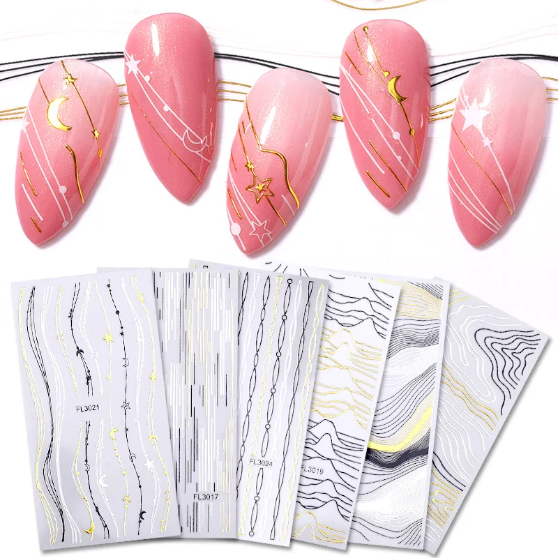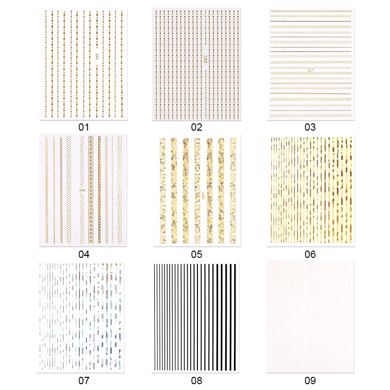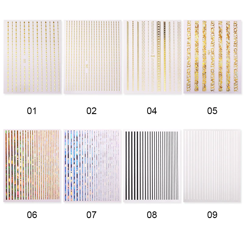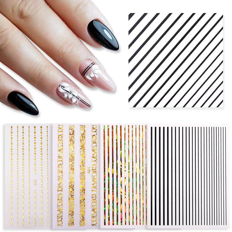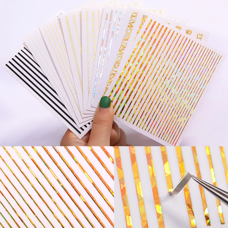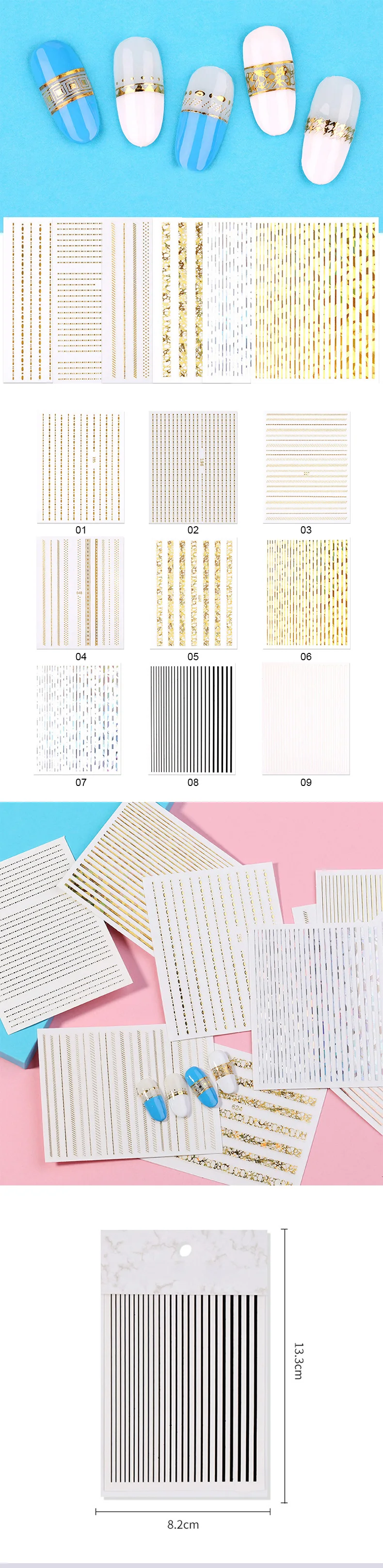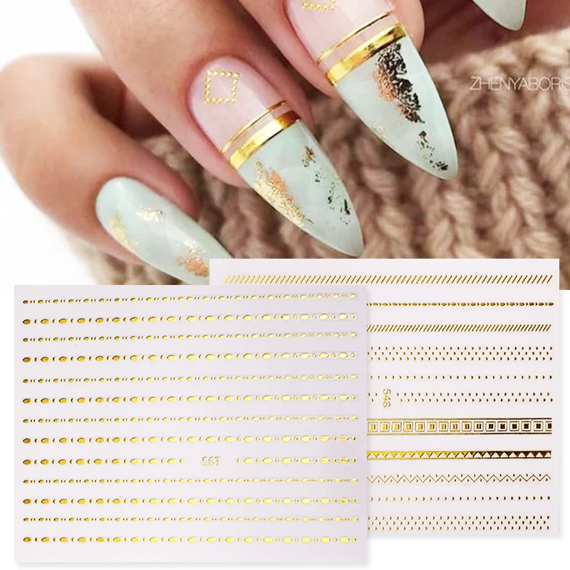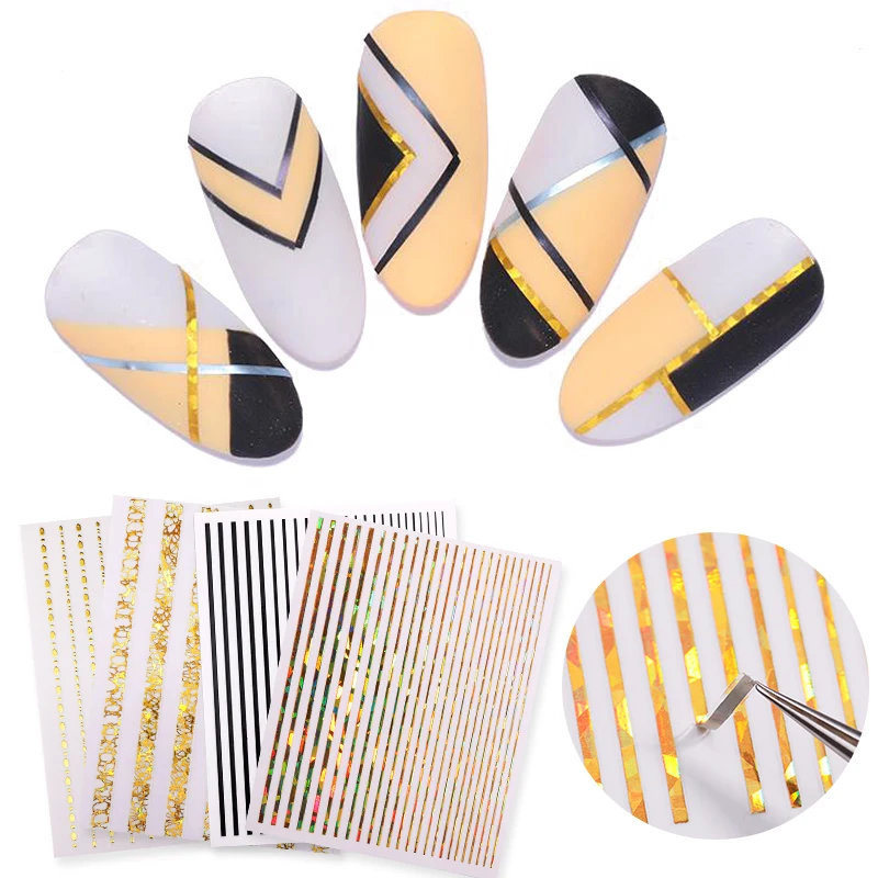 3D наклейки для ногтей, 1 шт., золотистые, черные, цветные, самоклеющиеся, полосатая форма наклейки для ногтей, смешанные переводные наклейки, аксессуары для рукоделия