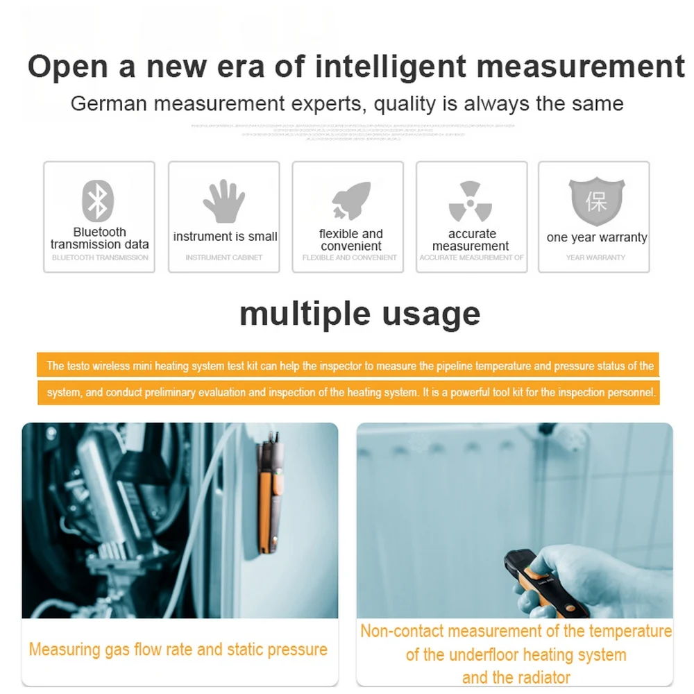 1x testo 805i, testo смарт-чехол (обогрев), сертификат калибровки Testo 115i, беспроводной мини-хомут для труб