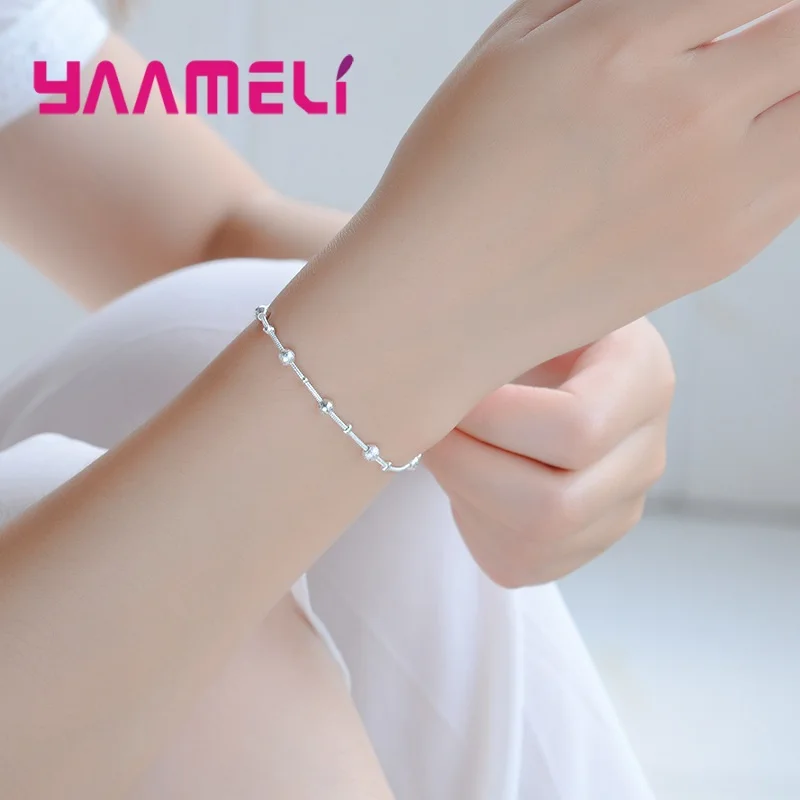 Модные женские ювелирные изделия из стерлингового серебра 925 пробы, элегантный красивый Штабелируемый браслет с бусинами, браслет для женщин и девочек, подарки на день рождения