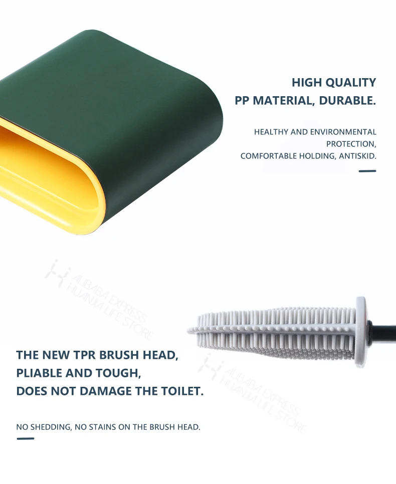 • Высококачественный полипропиленовый материал, прочный. Безопасная и экологически безопасная, удобная, нескользящая. • Новая головка щетки TPR, гибкая и жесткая, не повреждает туалет. Без выпадения, без пятен на головке кисти. • Конструкция Дренажного Отверстия, легко высыхает. • Основание может быть отделено, а двойной слой прочнее. Основание разделено на две части, которые могут быть усилены для предотвращения деформации. • Модный цвет, соответствующий цвету, делает жизнь лучше.