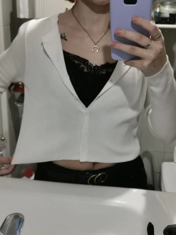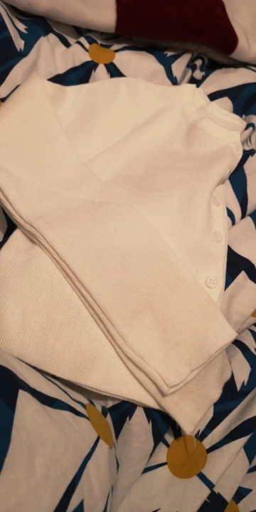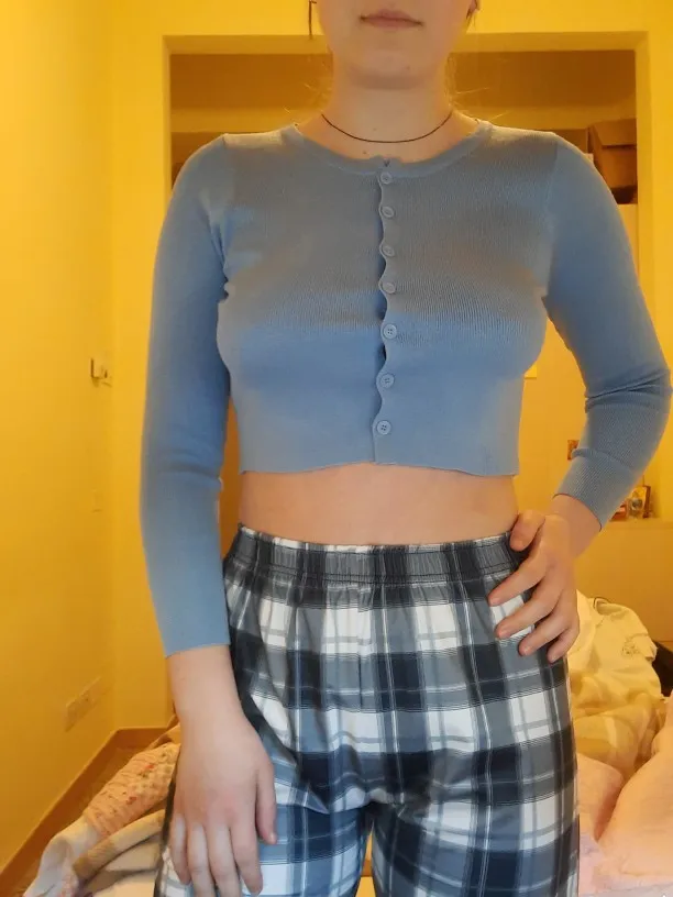 Мне нравится, это действительно мило, но единственная проблема была в том, что он сползает в сушильной машине, поэтому я рекомендую сушить в подвешенном состоянии (нет бирки или что-то еще, чтобы сказать мне), А также на одной из кнопок вы можете увидеть немного моей груди, потому что она нравится открывается, я думаю, это потому, что она скручивается, Но, кроме тех, что выглядит точно так же, как на картинке, и это мило.