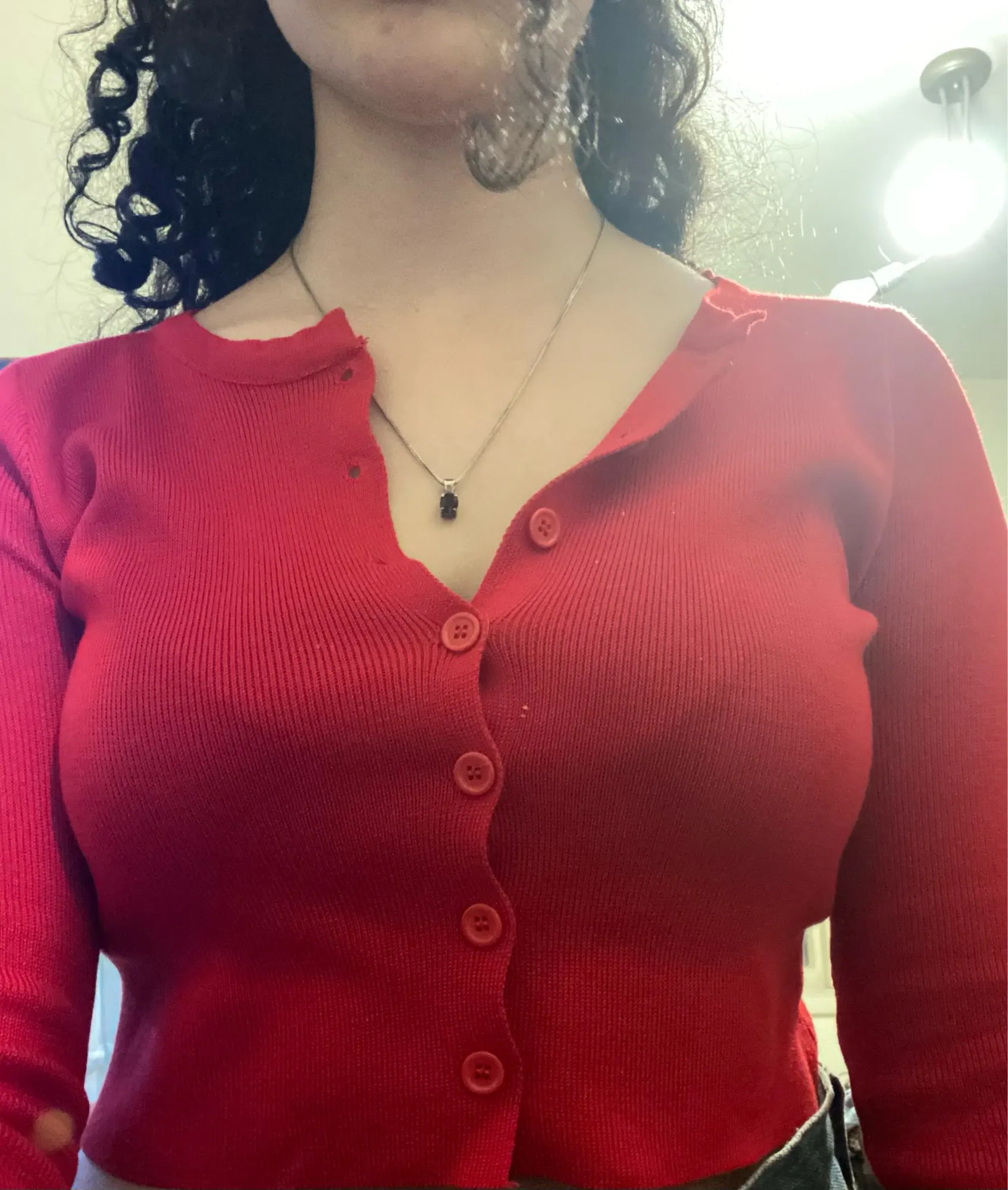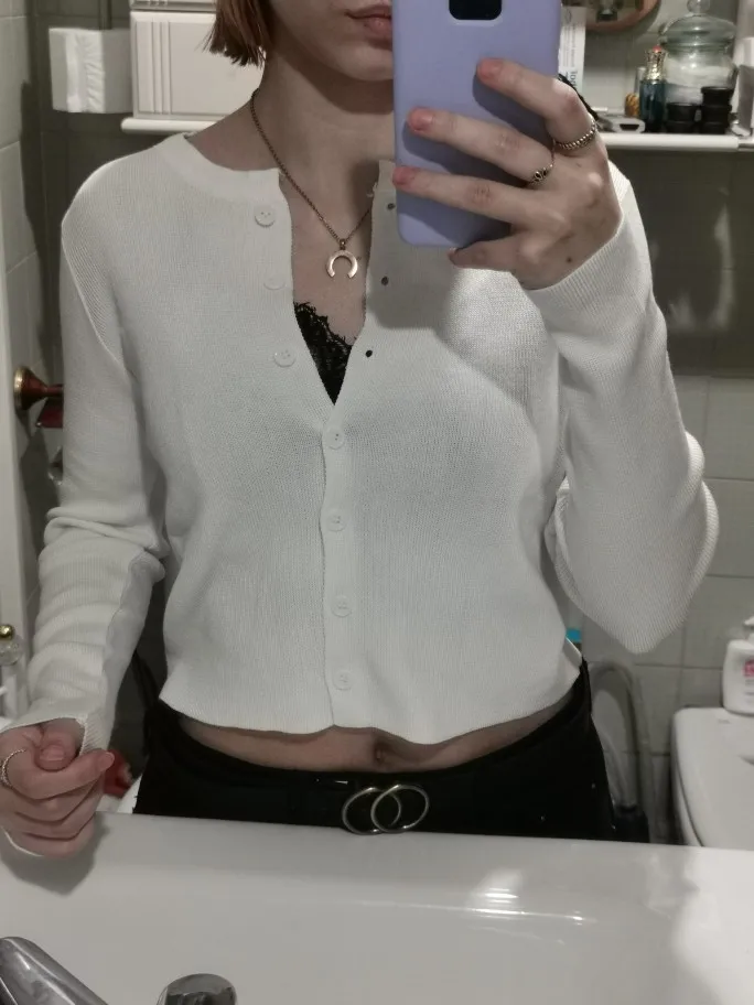 Очень милый кардиган, я получил очень много комплиментов. Цвет немного ярче для человека (не как пудровый), но все равно очень милый!
