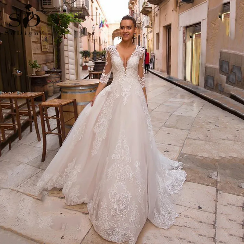Кружевное свадебное платье А-силуэта, с аппликацией, рукавом 2020 и...