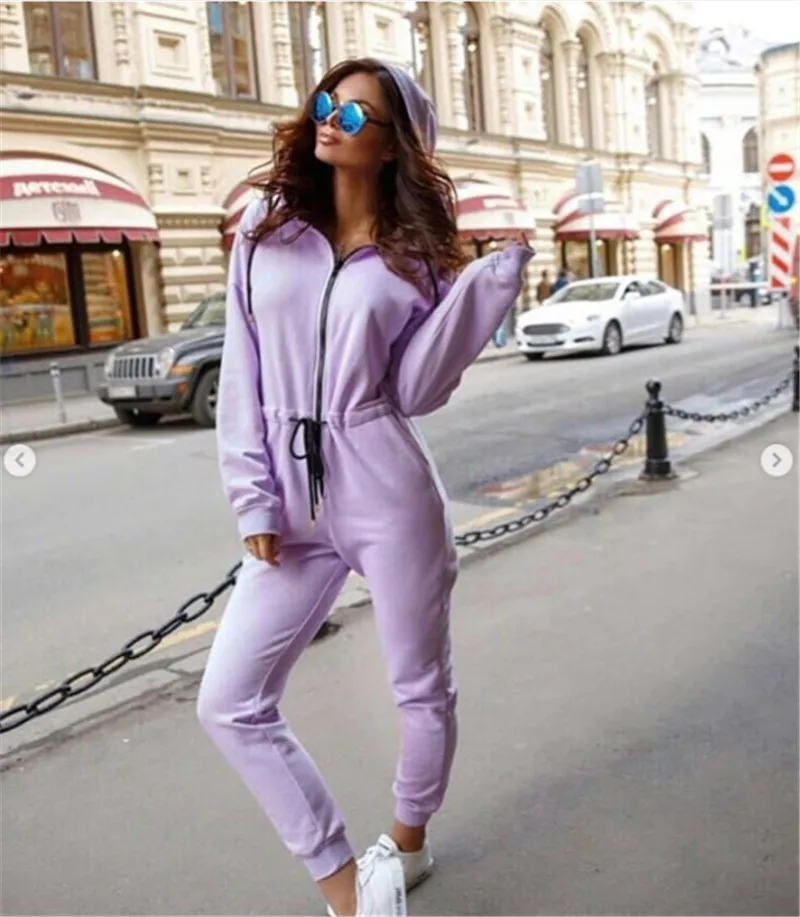 Женский Повседневный комбинезон, с длинным рукавом, с капюшоном и молнией спереди