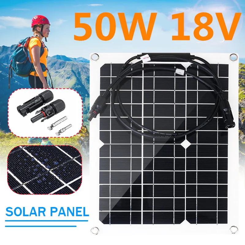 Солнечная панель 50 Вт 18 в, USB, монокристаллическая солнечная батарея, модуль сделай сам, соединитель кабеля, зарядное устройство, водонепроницаемая для наружного кемпинга