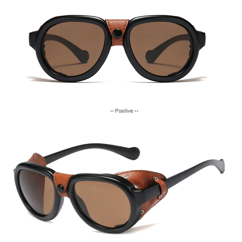 EYECRAFTERS 2020 Модные мужские стимпанк готические очки Солнцезащитные очки женские ретро модные кожаные с боковыми оттенками круглые солнцезащитные очки