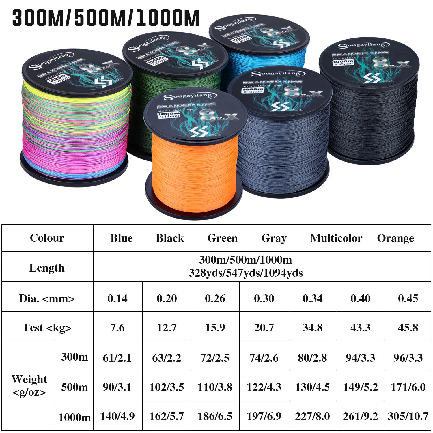 Sougayilang 8-жильная плетеная полиэтиленовая рыболовная леска 300 м, 500 м, 1000 м, прочная многонитевая рыболовная леска