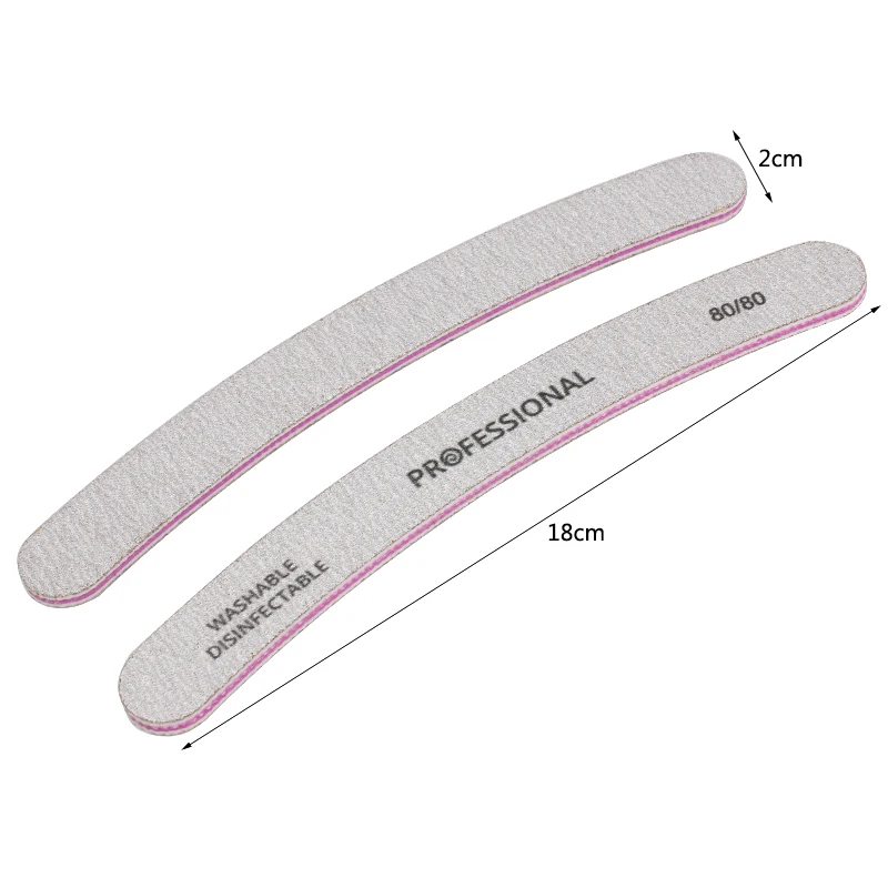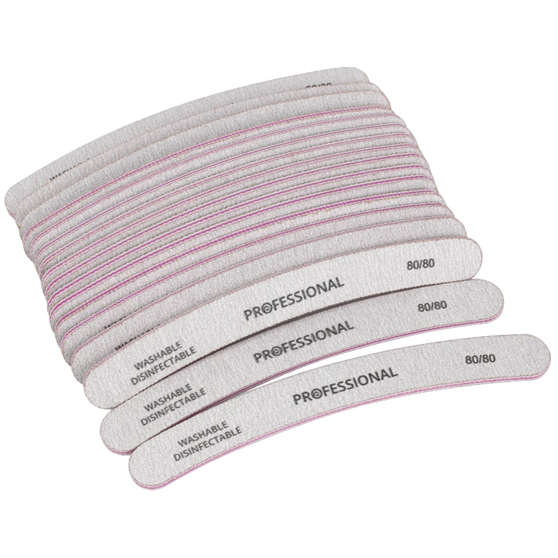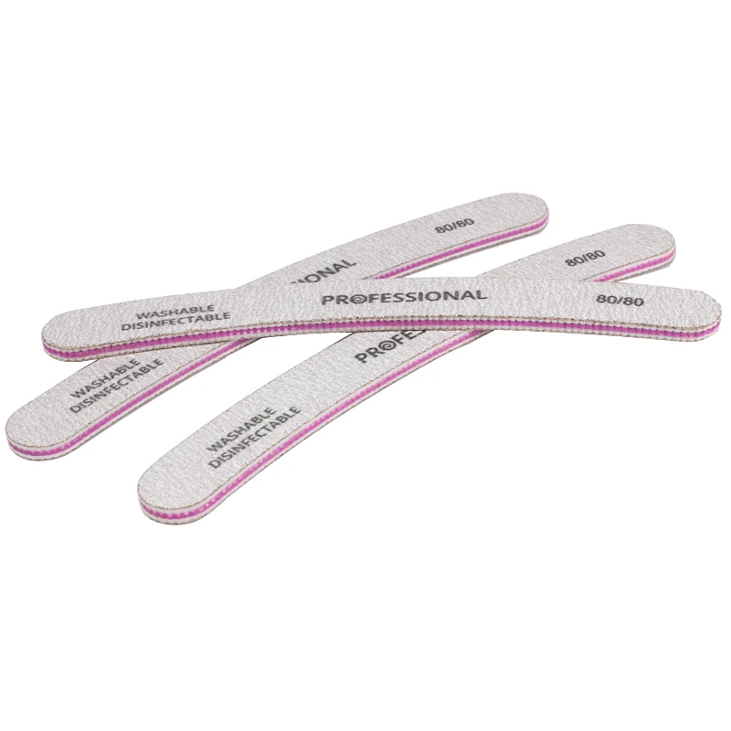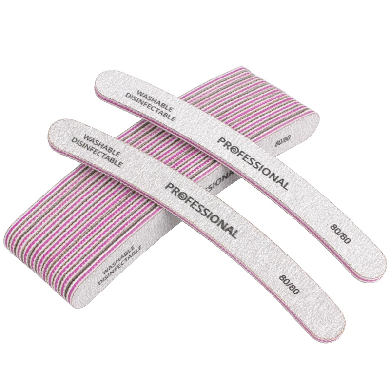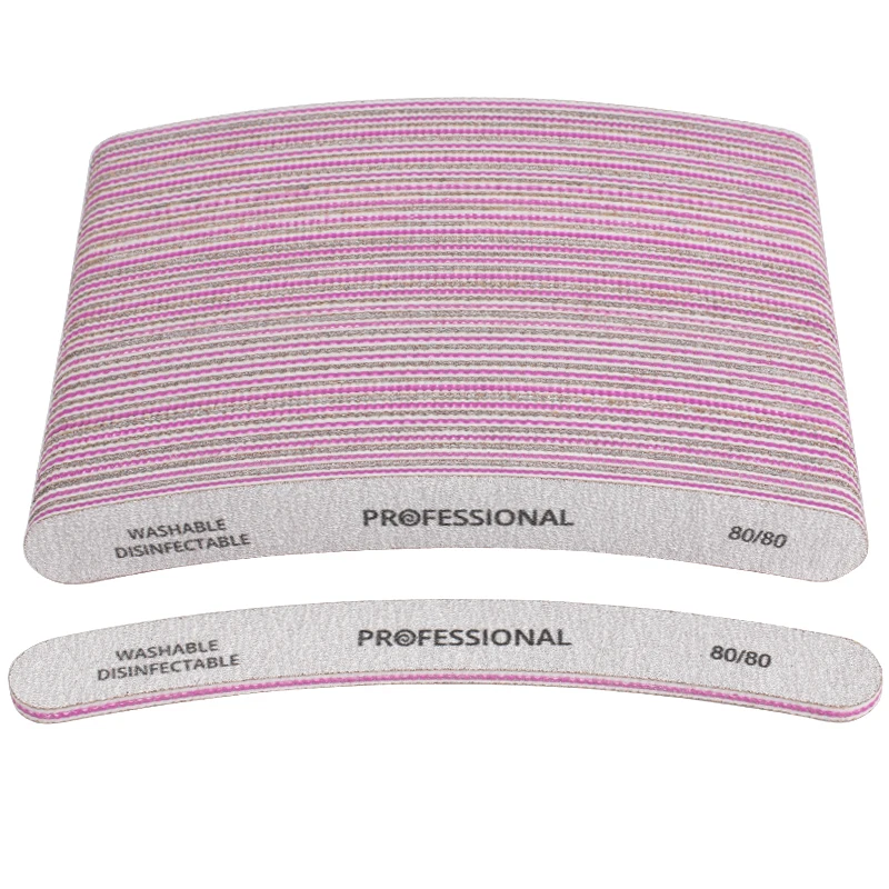 50 шт./лот, профессиональные пилки для ногтей, 80/80, изогнутые пилочки для ногтей, полировка салона, блестящие моющиеся Инструменты для маникюра и педикюра