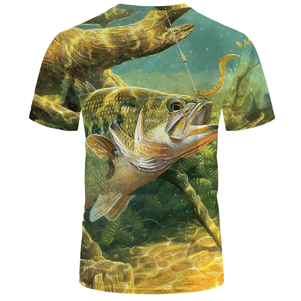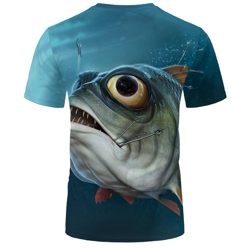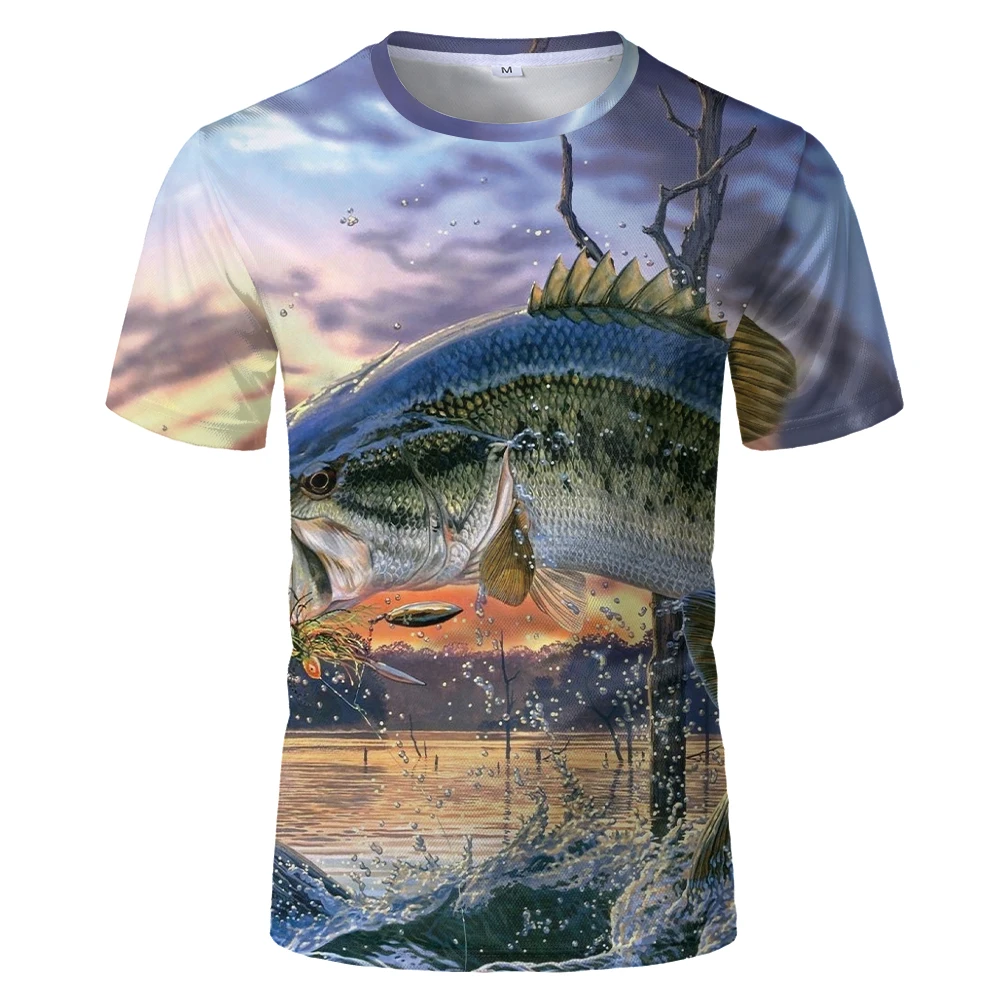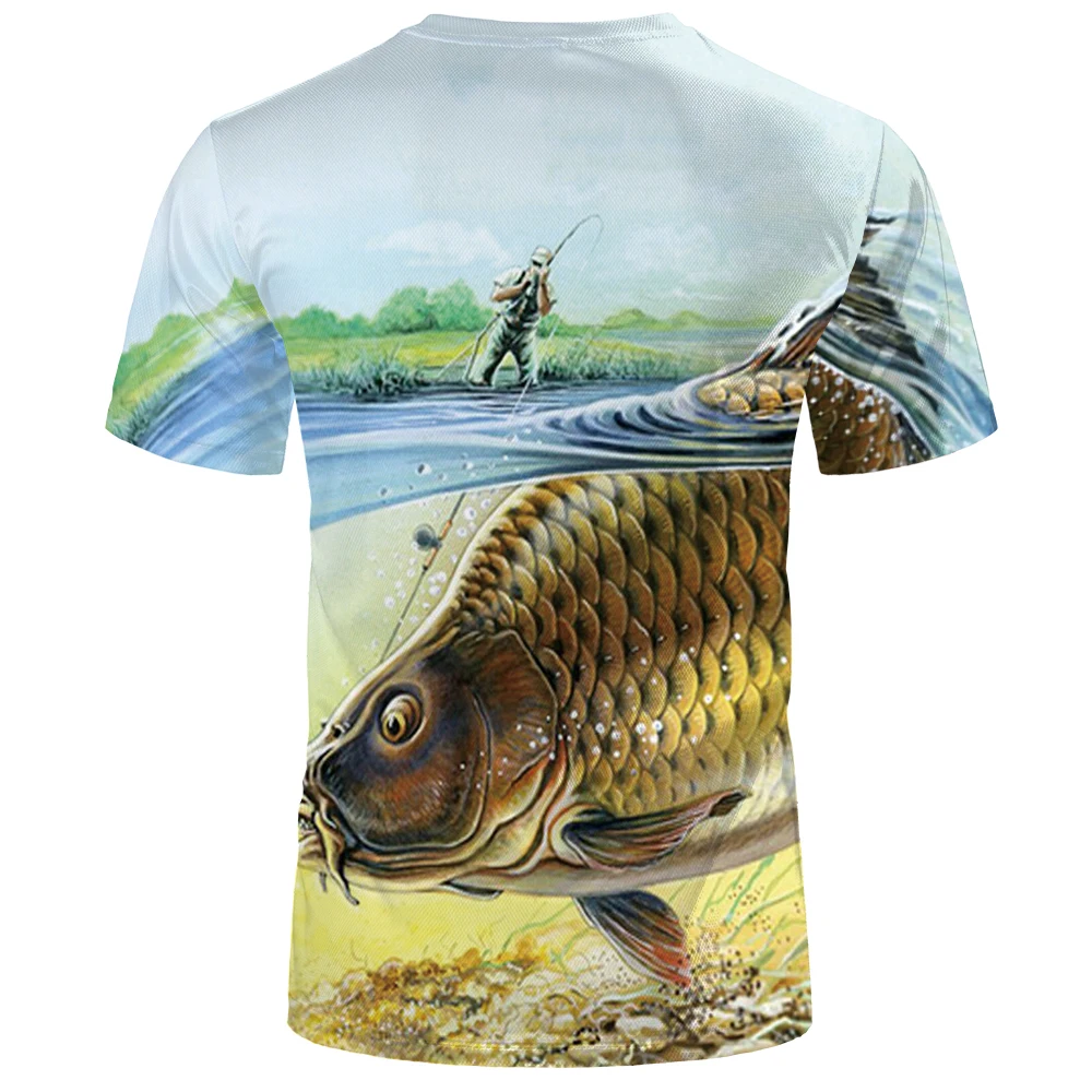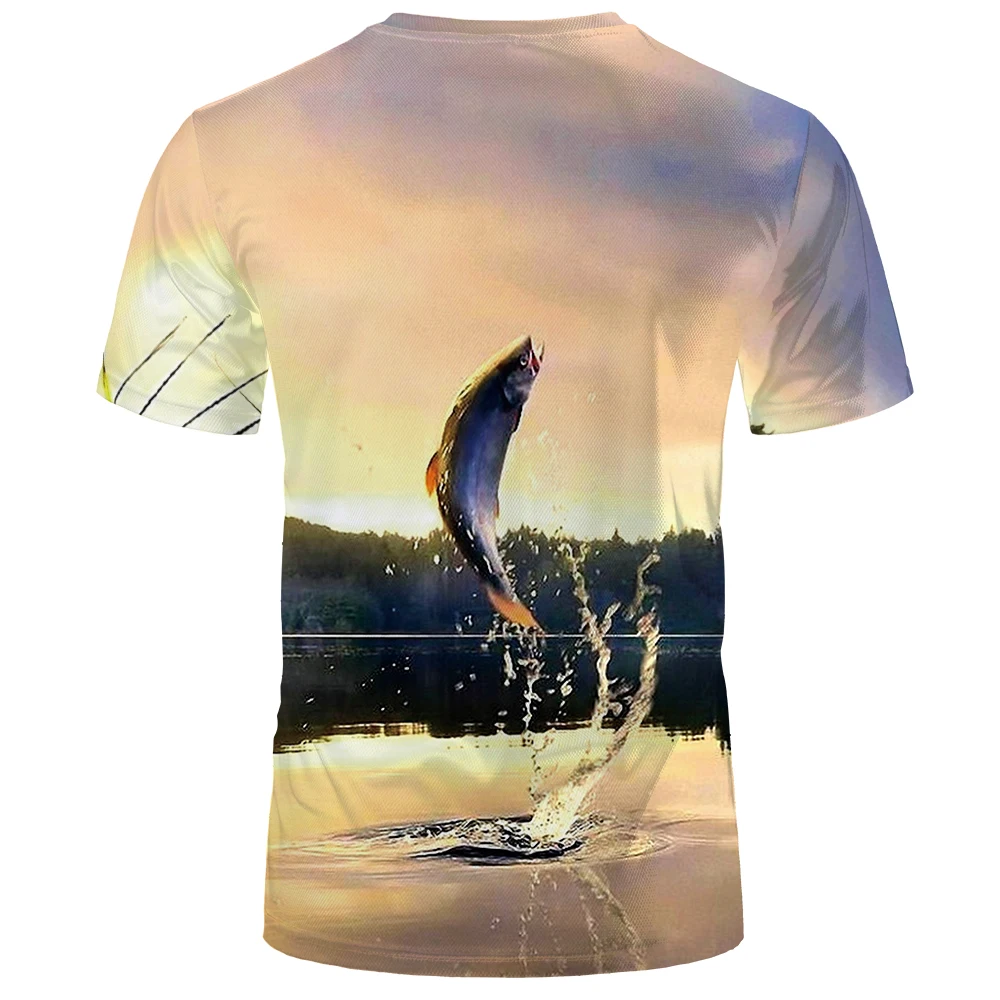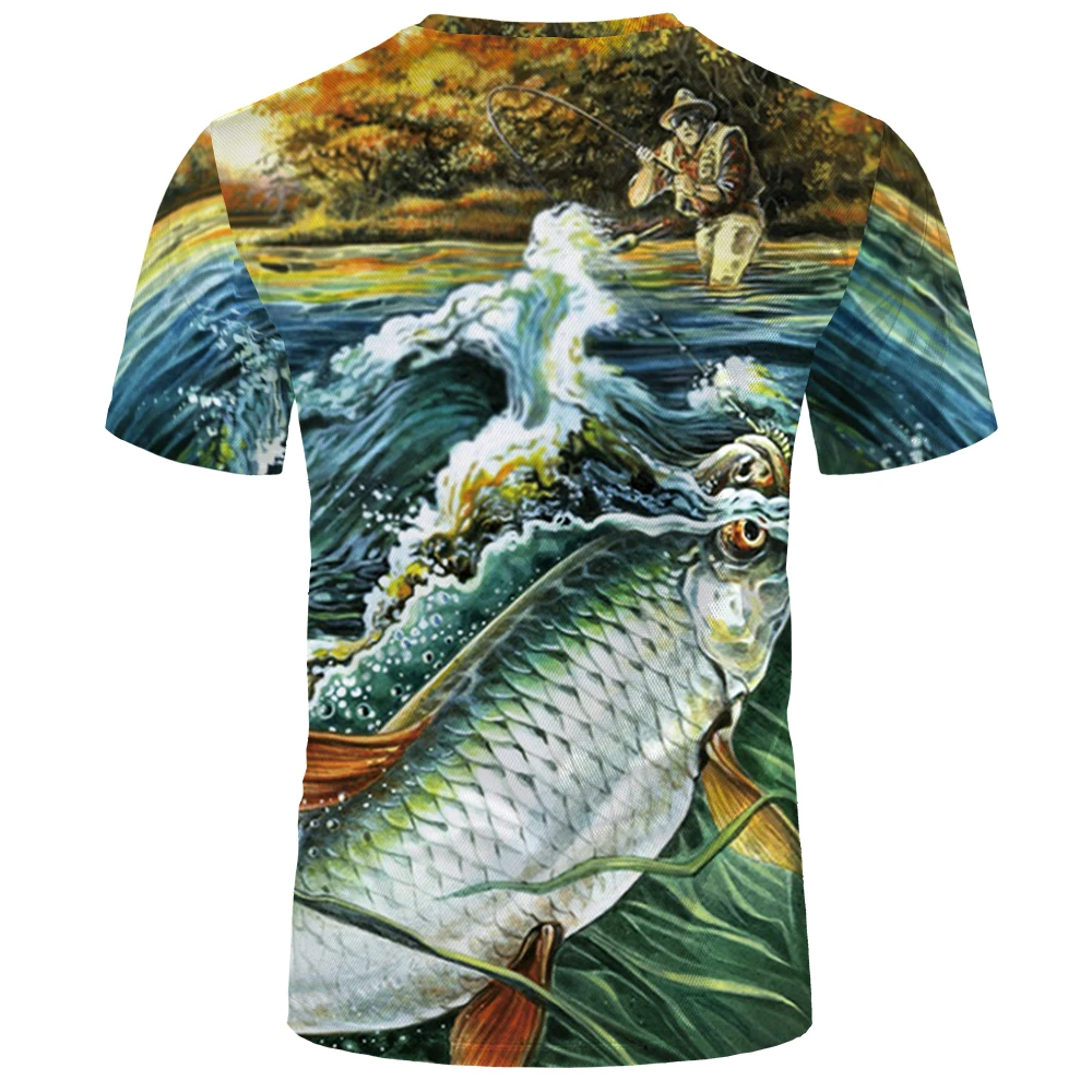 2020 Забавные футболки harajuku Прямая поставка Рыбалка Футболка Повседневная стильная цифровая рыба с коротким рукавом 3D печать Гавайская песчаная Пляжная футболка