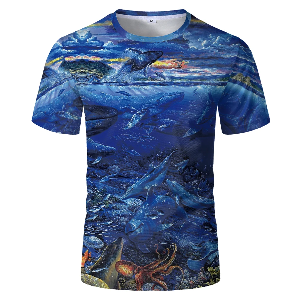 Футболка мужская и женская однотонная с 3D-принтом морской рыбы