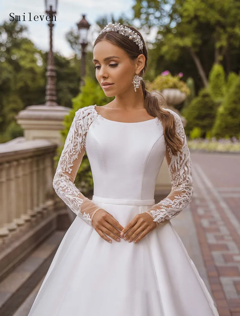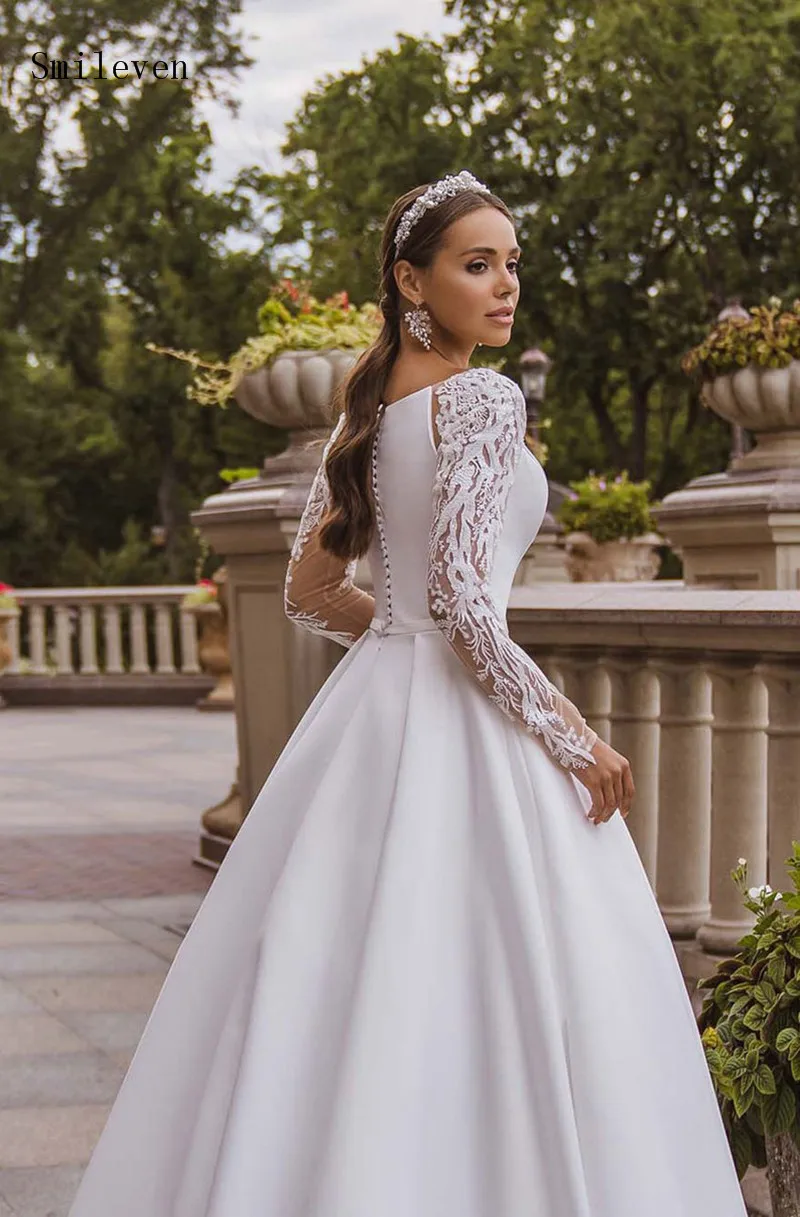 Атласное свадебное платье Smileven, ТРАПЕЦИЕВИДНОЕ кружевное платье принцессы с длинным рукавом, в стиле бохо, на заказ