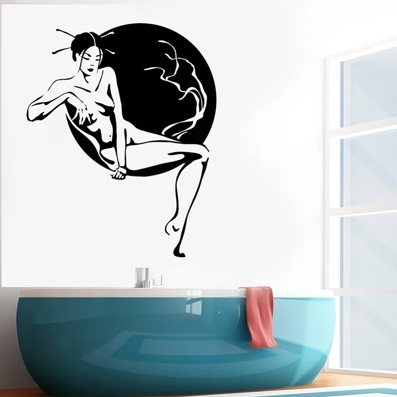 Виниловая наклейка на стену с изображением девушки гейши, украшение...
