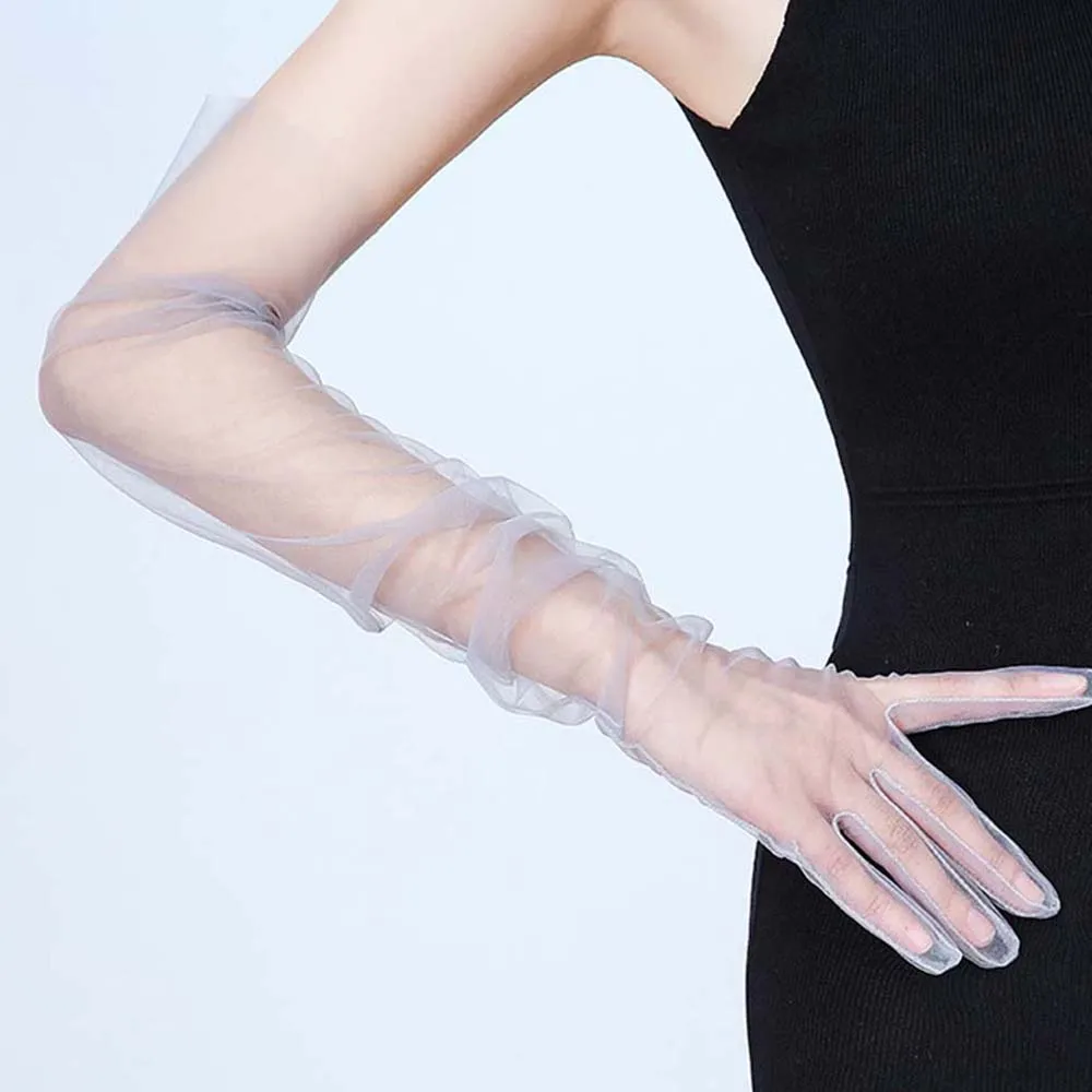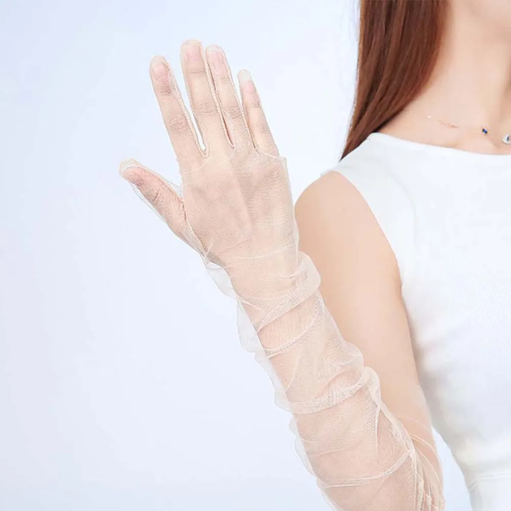 Женские ультратонкие перчатки из тюля, длинные перчатки до локтя, прозрачные аксессуары для фотосъемки, Длинные митенки