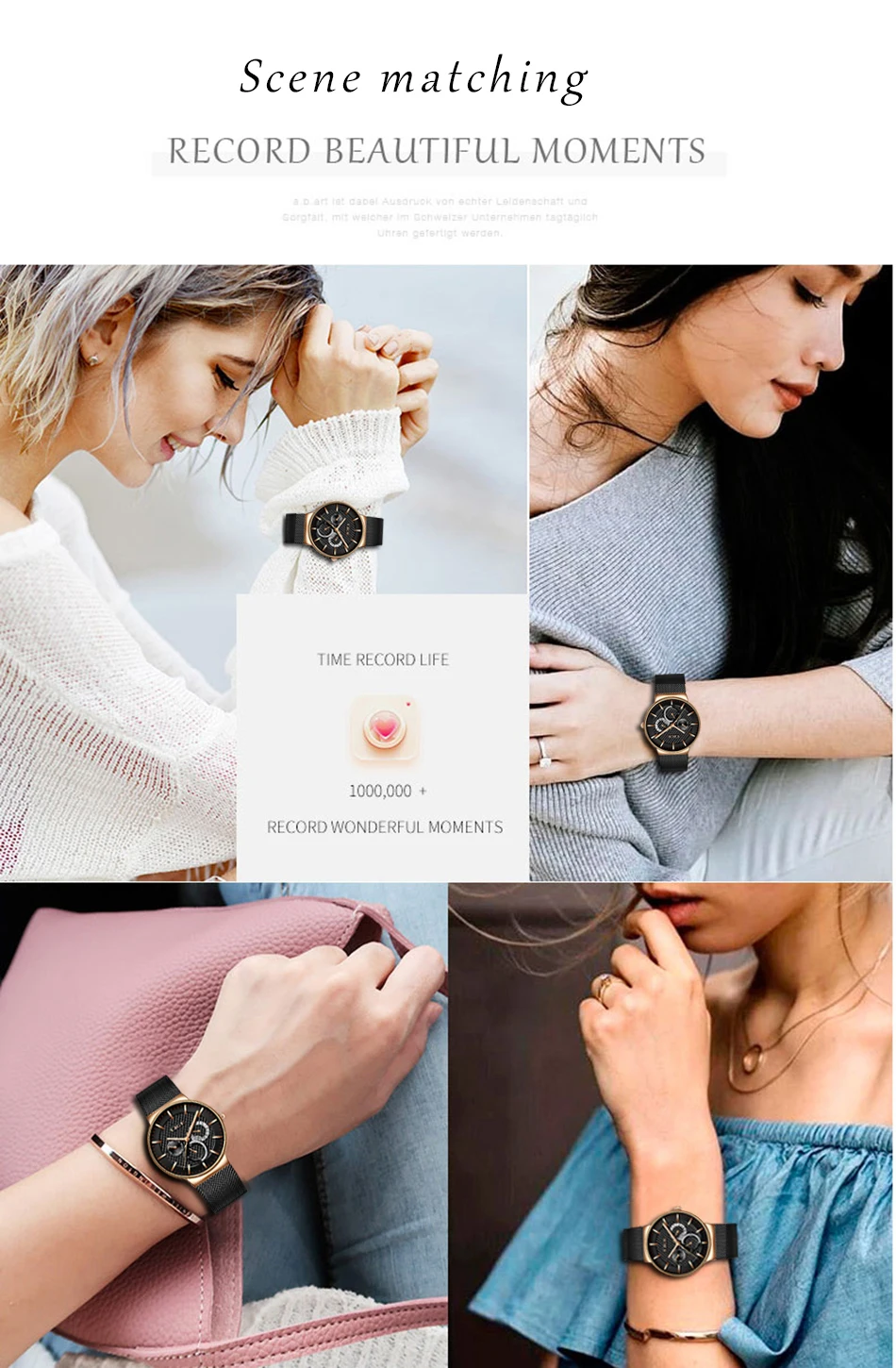 Часы женские кварцевые, с сетчатым ремешком из нержавеющей стали