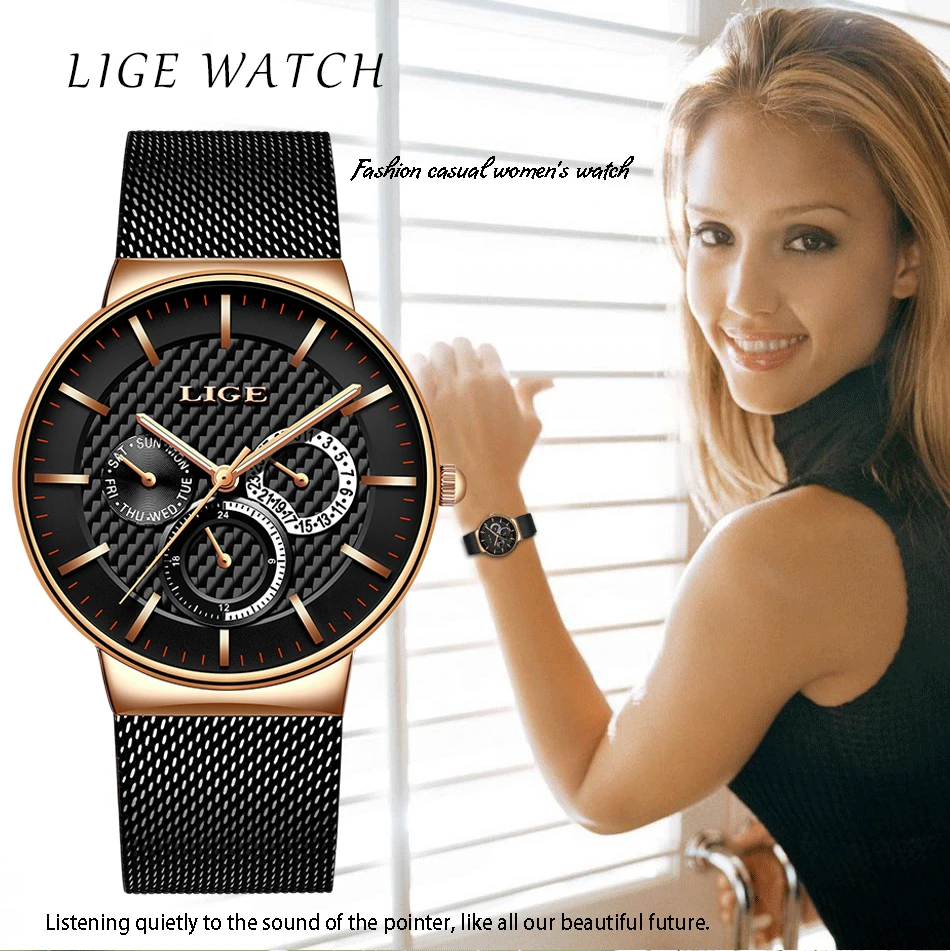 LIGE новые женские модные часы, креативные Женские повседневные час...