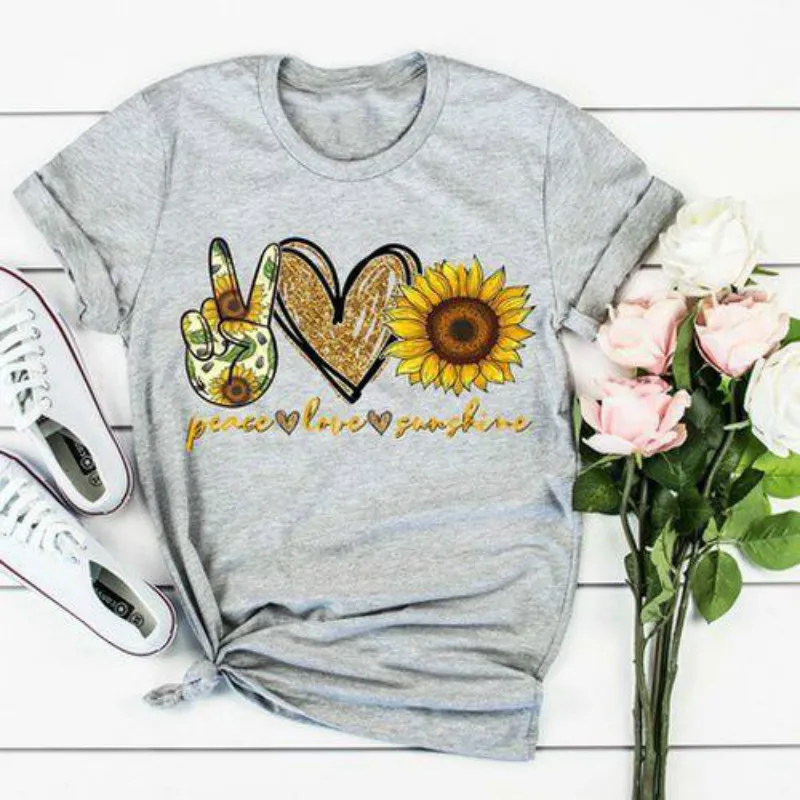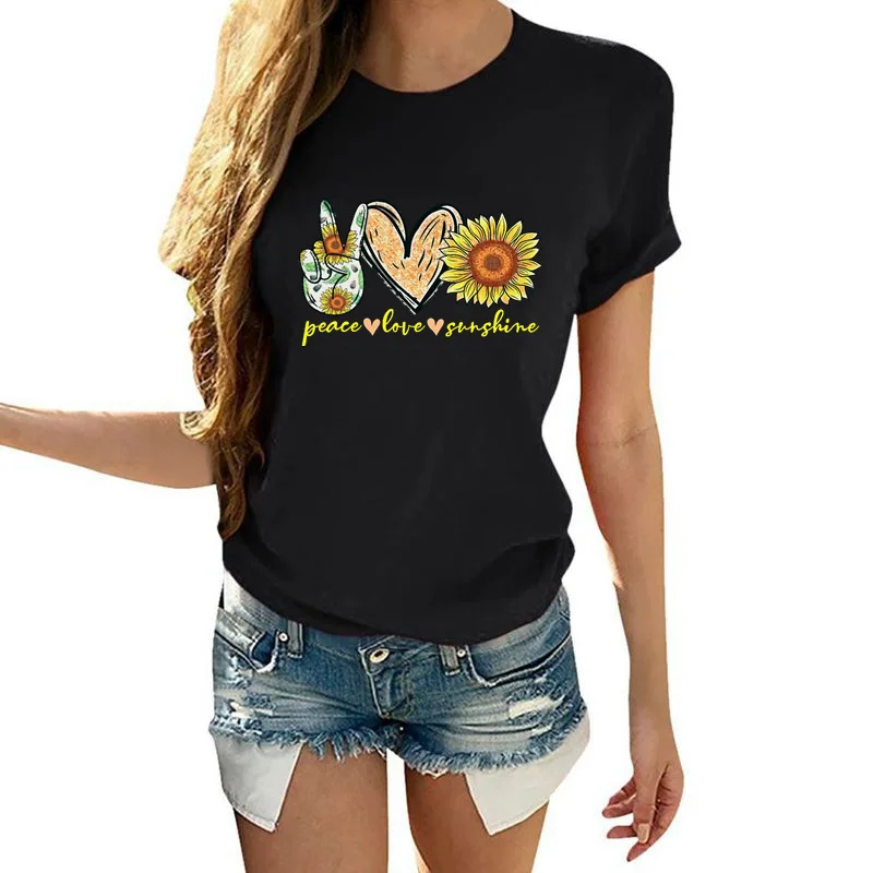 Футболка женская повседневная с принтом маргариток, короткий рукав, базовый топ с круглым вырезом, лето 2020