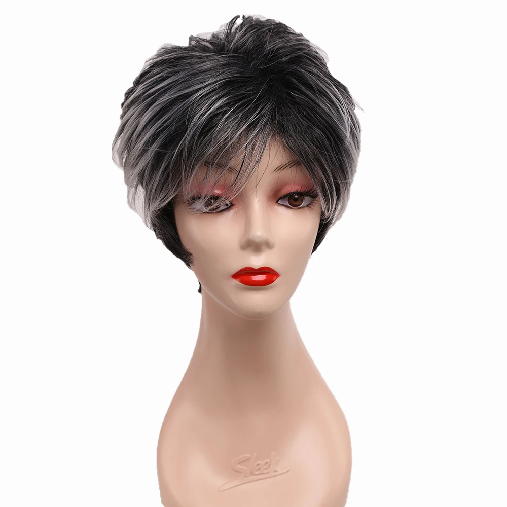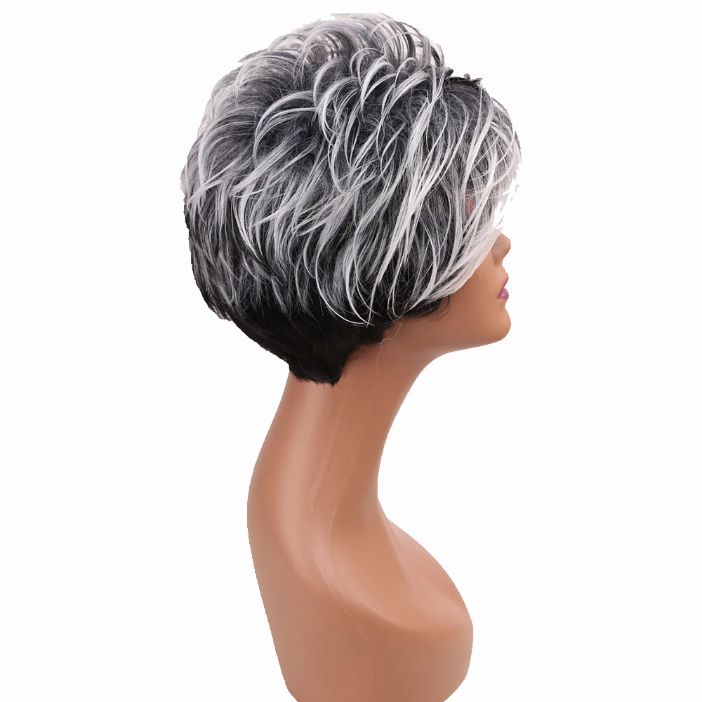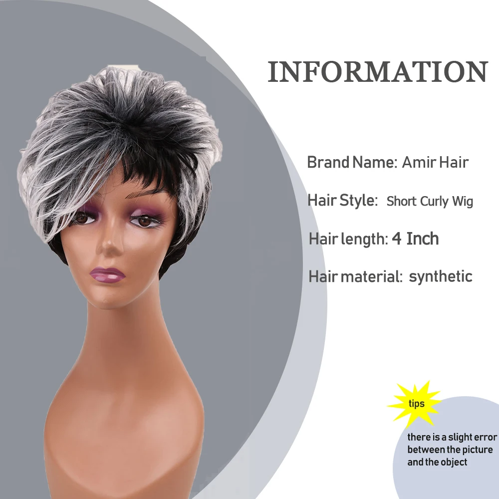 Парик Amir с серыми волосами Омбре, 2 оттенка, серый, черный, Короткие вьющиеся искусственные волосы для женщин, косплей