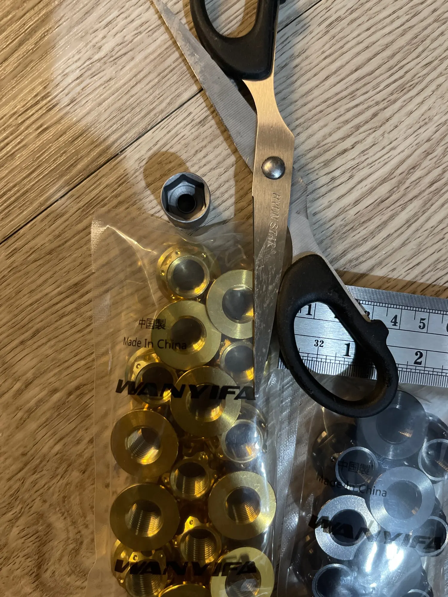 Красивая гайка. Быстрая доставка. Рекомендуется применять какой-то фиксатор, чтобы он не ослаблялся, так как он не приносит страховку, что другие гайки уже ездят.