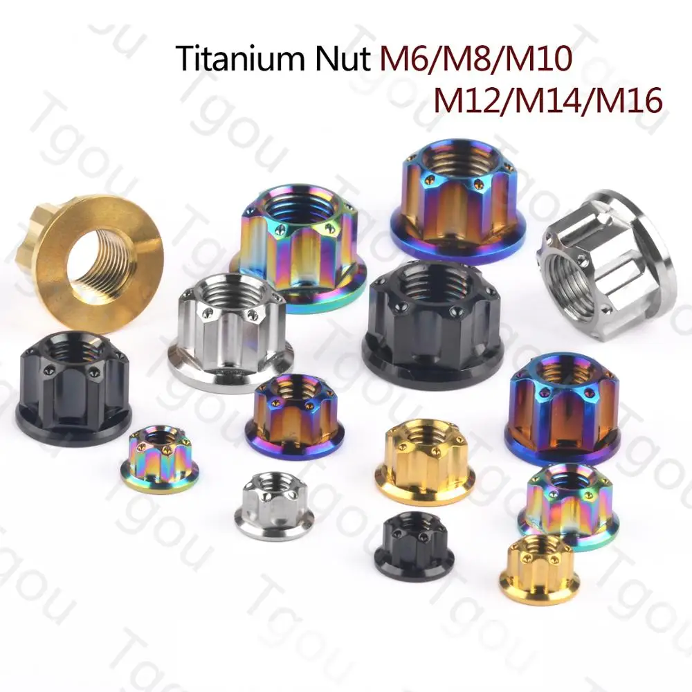 Титановая гайка Tgou M6M8M10M12M14M16, фланцевые гайки для мотоцикла, велосипеда, автомобиля