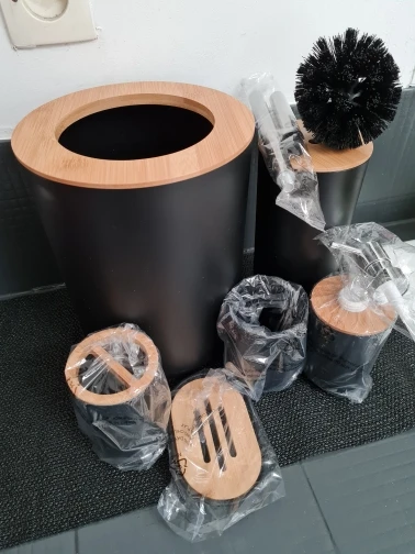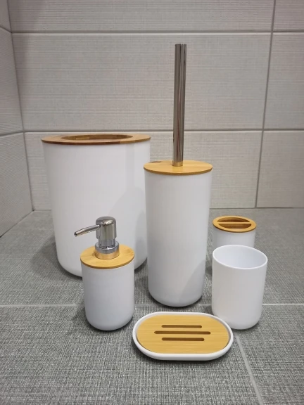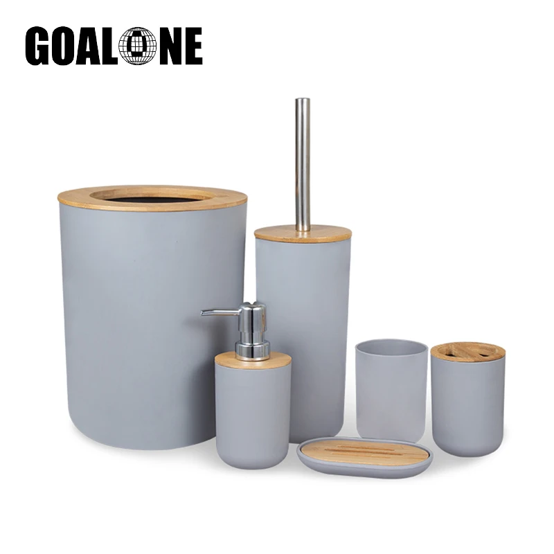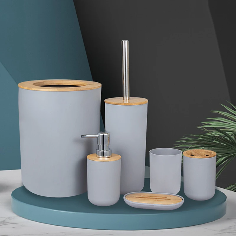 Набор аксессуаров для ванной комнаты, 6 шт., бамбуковый набор для ванной, держатель для зубной щетки, диспенсер для мыла, туалетная щетка, мусорное ведро, набор для ванной комнаты