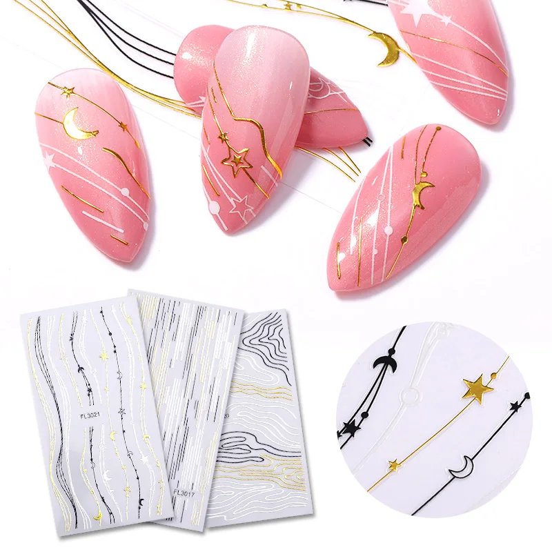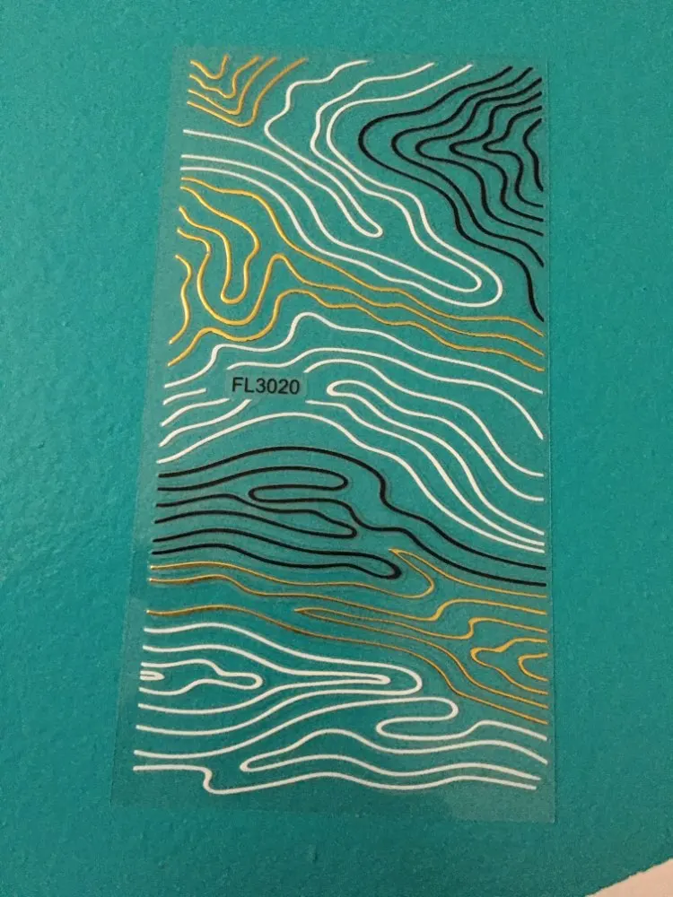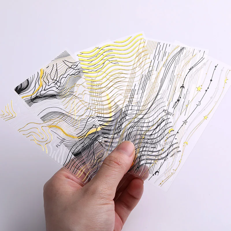 Наклейки для ногтей, 1 лист, переливающиеся, черные, золотые, 5D, лента с кисточками линий